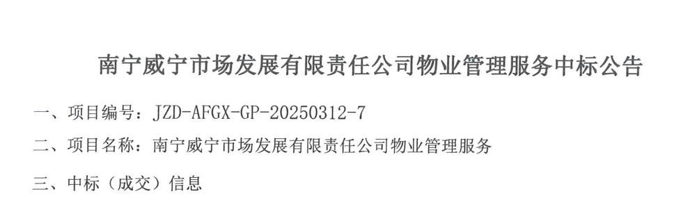 南寧威寧市場發展有限責任公司物業管理服務中標公告