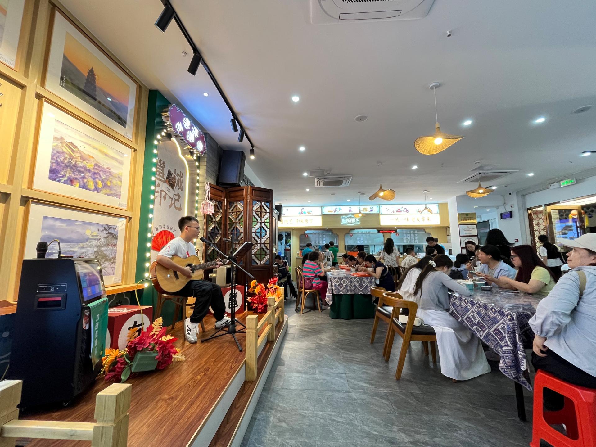 南寧文旅集團(tuán)將觀演活動(dòng)與文旅資源深度綁定,在旗下品牌邕城印記店內(nèi)外設(shè)置2個(gè)歌迷打卡點(diǎn),店外全天設(shè)置應(yīng)援合影美陳,同時(shí)放置“刀迷點(diǎn)唱機(jī)”讓歌迷現(xiàn)場(chǎng)點(diǎn)唱刀郎歌曲,加熱互動(dòng)氛圍;演唱會(huì)期間,店內(nèi)連續(xù)兩晚開展“邕城老友小舞臺(tái)”刀郎金曲專場(chǎng)演出,由“銀河老友”樂隊(duì)彈唱刀郎經(jīng)典歌曲,到店顧客可以聽歌打卡、點(diǎn)歌互動(dòng)和大合唱,增加觀演樂趣和集體互動(dòng)性,吸引過萬(wàn)人次到店打卡、用餐、消費(fèi)。