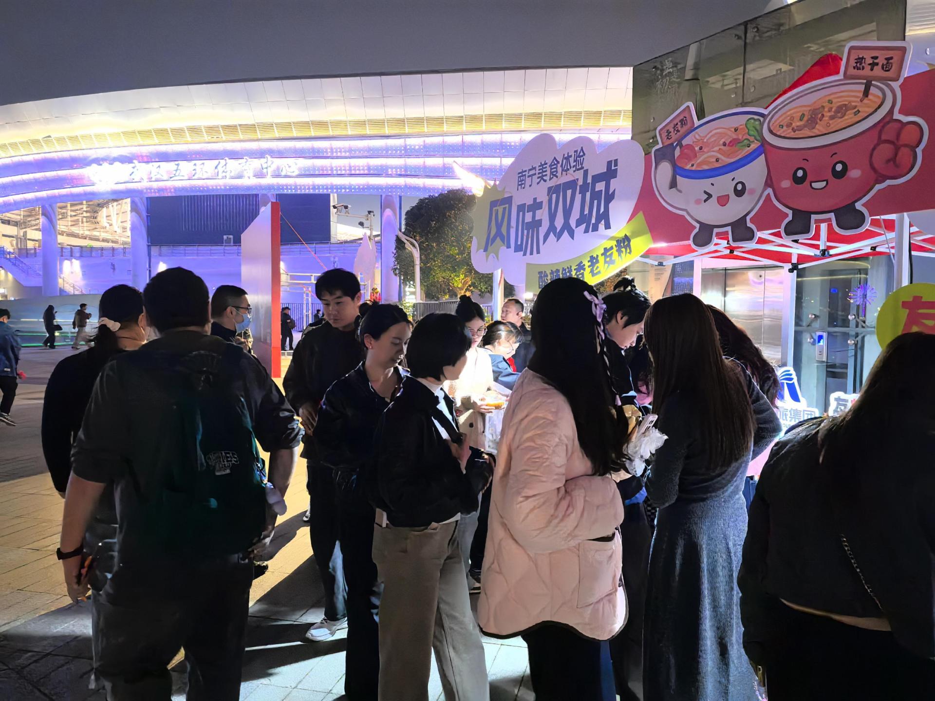 文化輸出層面,南寧文旅集團在演唱會場外精心打造南寧文化主題展區(qū),將旗下銀河公司南寧老友粉、雞仔餅、五象山莊壯錦小象等特色IP產(chǎn)品集中展示,以"演藝+市集"的創(chuàng)新模式,讓南寧特色產(chǎn)業(yè)鏈資源走進武漢市場。更聯(lián)合南寧市文廣旅局發(fā)起"南寧有禮"贈禮活動,精選南寧特色產(chǎn)品贈予武漢歌迷,以“小禮物”傳遞“大文化”,實現(xiàn)城市文化的精準傳播與情感共鳴。