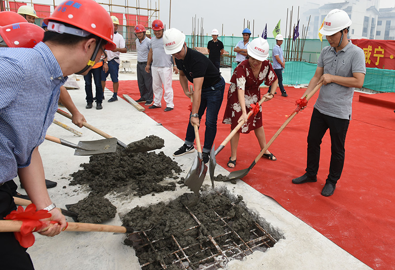 威寧鄰家股份公司副總經理謝子穎,威寧建投公司副總經理林禮進、項目施工單位和監理單位人員代表參加了封頂儀式,謝子穎宣布項目封頂,并與威寧建投公司及相關單位代表共同啟動封頂儀式。