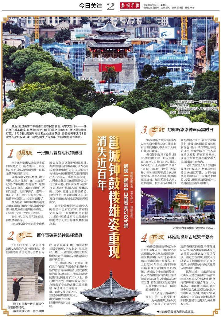 作為邕州古城·中山路歷史文化街區(qū)的形象入口,百年鐘鼓樓風(fēng)采重現(xiàn),被視為邕州古城·中山路歷史文化街區(qū)華麗亮相的第一步,更是威邕城市運(yùn)營集團(tuán)打造邕州古城城市級(jí)商文旅項(xiàng)目的關(guān)鍵一步。