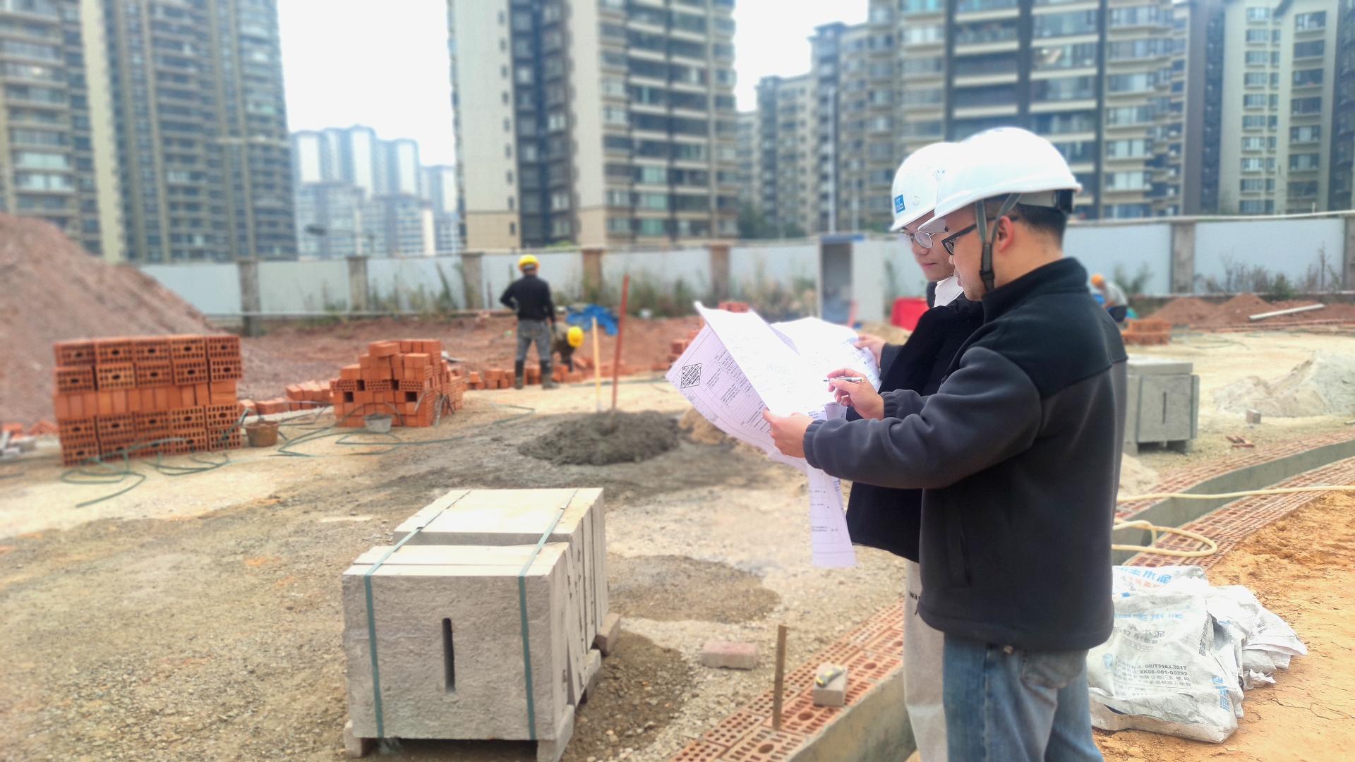 南寧市邕寧區江灣路東小學項目設計施工人員勘驗現場
