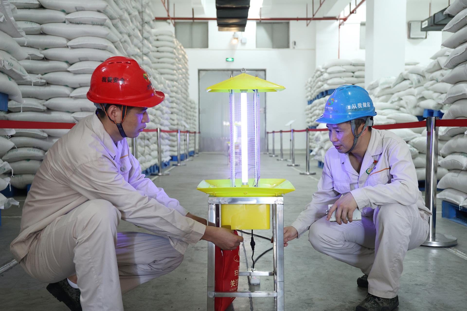 光波誘捕成本低、無危害、無污染,是一種高效的綠色防蟲方式。儲備糧公司組織力量積極參與國家糧食科學(xué)研究院“光波誘蟲燈”技術(shù)應(yīng)用研究,利用害蟲特定趨光性,通過紫外光吸引害蟲靠近誘蟲燈,實現(xiàn)負壓吸入或電擊滅殺害蟲的效果,達到物理誘捕替代化學(xué)藥劑殺蟲防蟲抑蟲的效果。同時,因該技術(shù)填補了儲糧害蟲物理防治領(lǐng)域的技術(shù)空白,公司榮獲南寧市“職工創(chuàng)新成果二等獎”,為《糧食節(jié)約行動方案》中“減藥控害”目標(biāo)提供了新路徑,推動糧食倉儲行業(yè)向智能化、低碳化轉(zhuǎn)型。