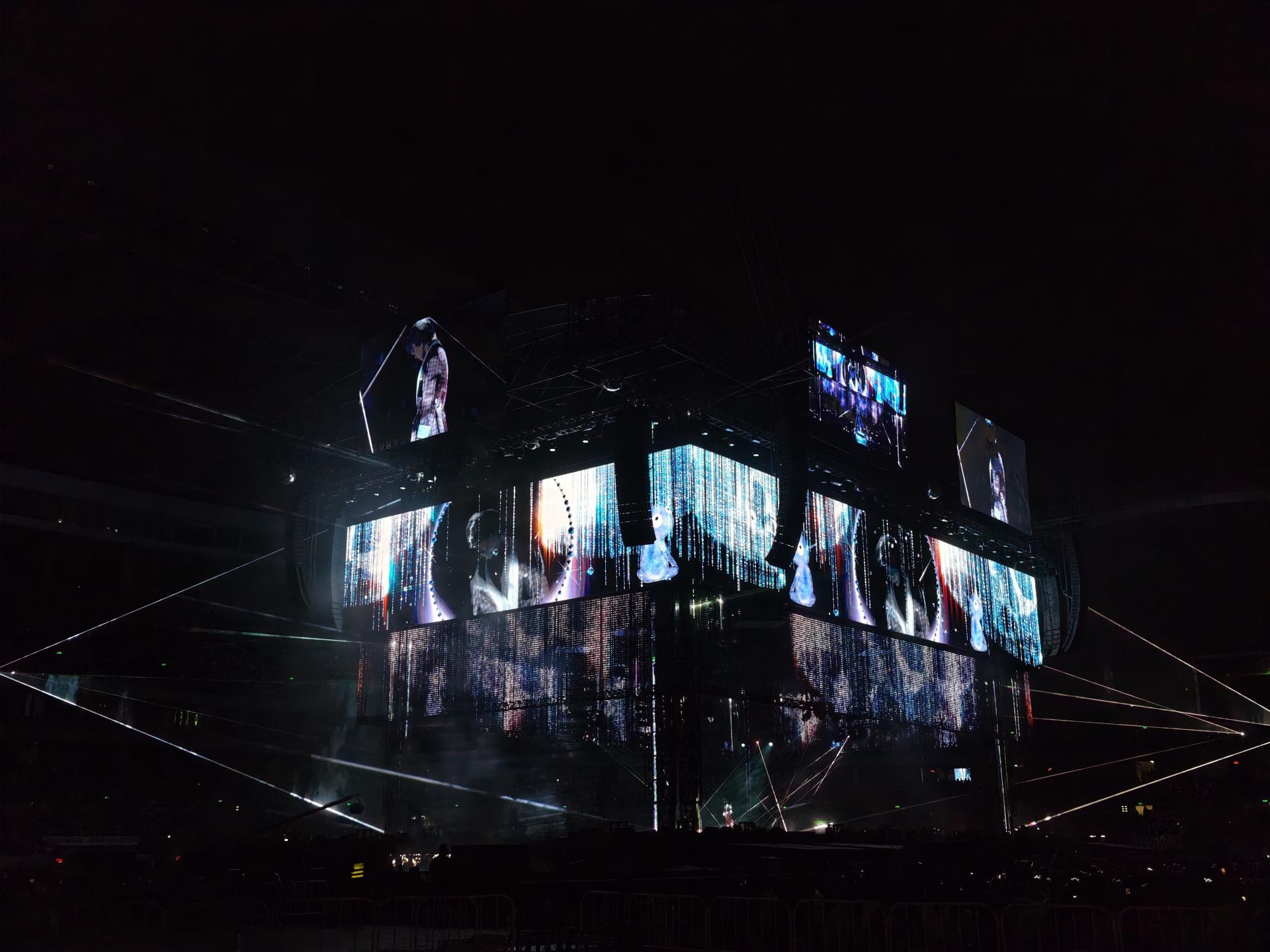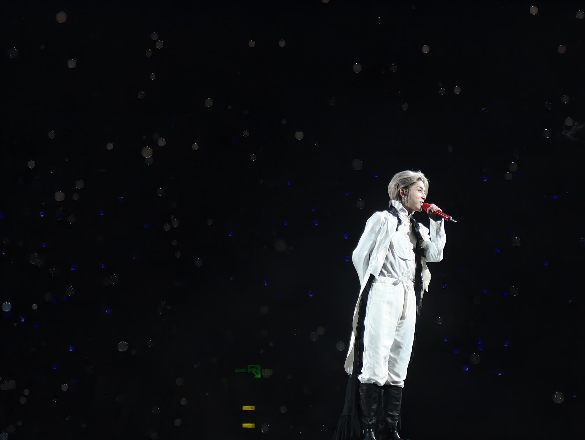 舞美燈光與邕城夜色交相輝映,恰似音樂與城市的熱情對話,將未來科技感與東方美學熔于一爐。開場曲《虛幻與現實》搭配千軍萬馬般磅礴的燈光秀,瞬間點燃全場,讓現場“火星人”們直呼“震撼到起雞皮疙瘩”。《忒修斯的船》則以中西合璧的靜謐力量直擊人心,愛爾蘭哨笛的悠揚、古箏的雅致、豎琴的空靈交織相融,勾勒出獨屬于海洋的遼闊聽覺空間。《永不熄滅的火焰》在冬夜里送來溫暖,歌聲裹挾著滾燙的力量,驅散了寒意,也讓每一份熱愛都有了具象的模樣。從《我管你》的全場沸騰,到《點燃銀河盡頭的篝火》的默契和聲,每一句旋律都在回應著華晨宇的深情演繹,也牽動著臺下每一顆熾熱的心。