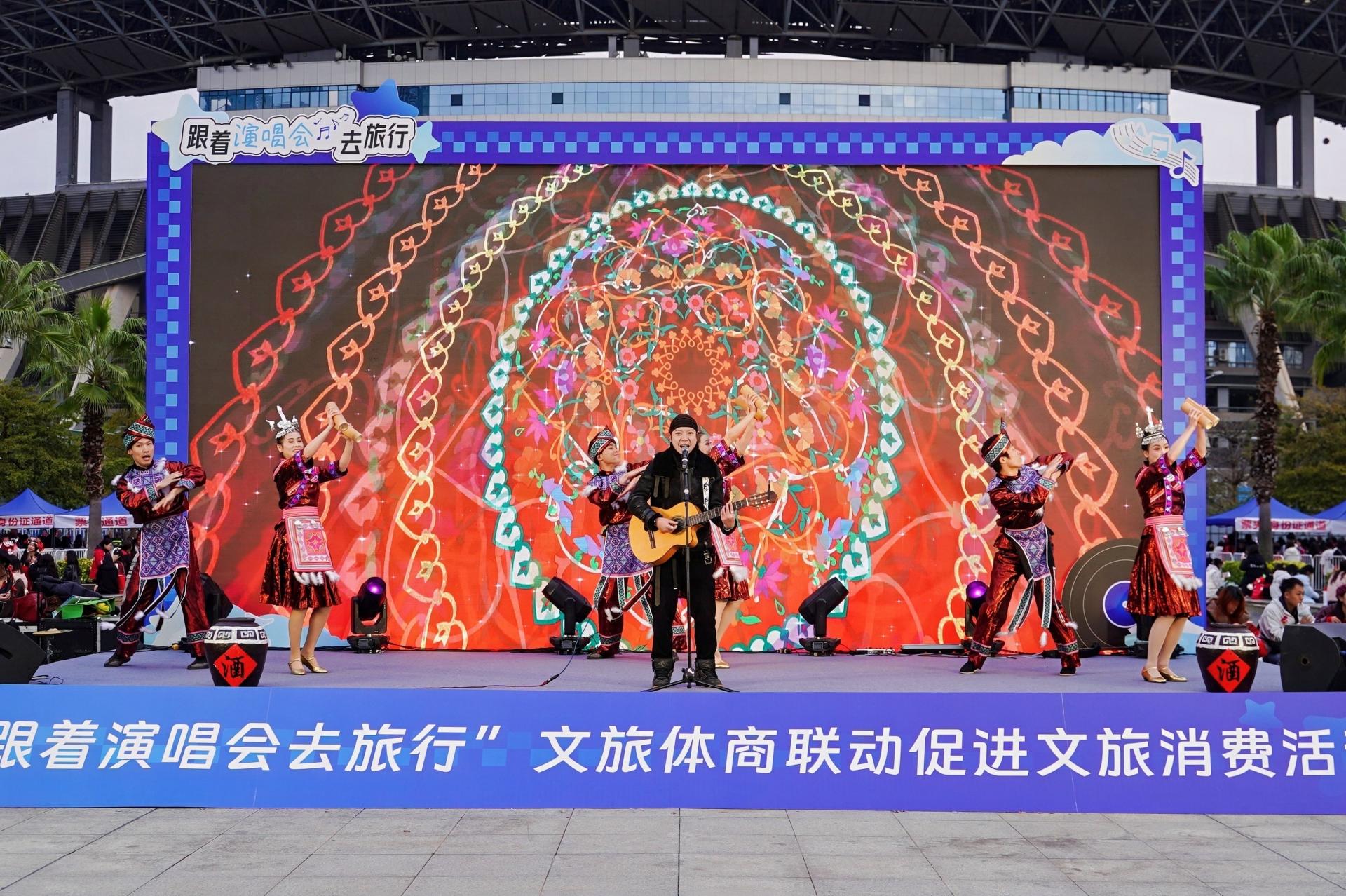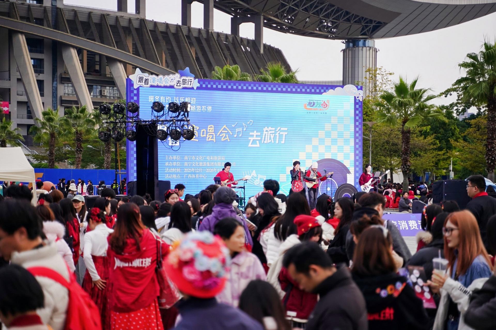 本次市集增加了音樂展演舞臺,從充滿民族特色的壯鄉歌曲到沉浸式的Live樂隊表演,不僅豐富了歌迷的游玩體驗,還將市集消費場景升級成為演唱會的“戶外預熱場”。這場集“吃、玩、游、樂、購”于一體,融合文化、旅游、演藝等多元體驗的市集活動,已然成為一場新年狂歡嘉年華,為觀演游客帶來別具一格的假日感受。