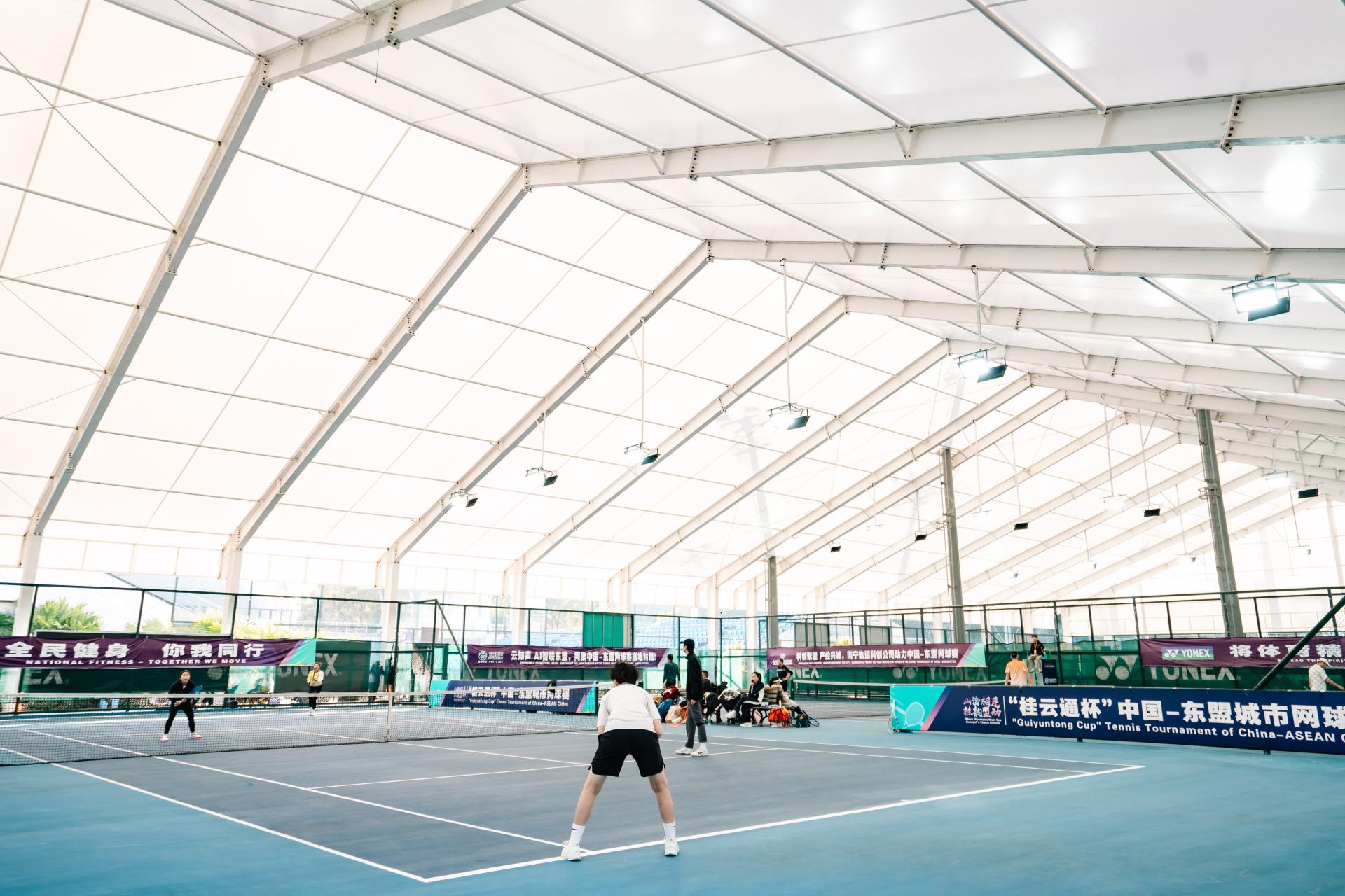 為保障賽事品質,南寧文旅集團對廣西體育中心室外網球場進行全方位升級改造,重點加裝了全覆蓋式頂棚與賽事級照明系統,從硬件層面徹底解決了天氣對賽事的影響,顯著提升觀賽舒適度與賽事轉播效果,為承接大規模、高規格專業網球賽事奠定堅實基礎。
