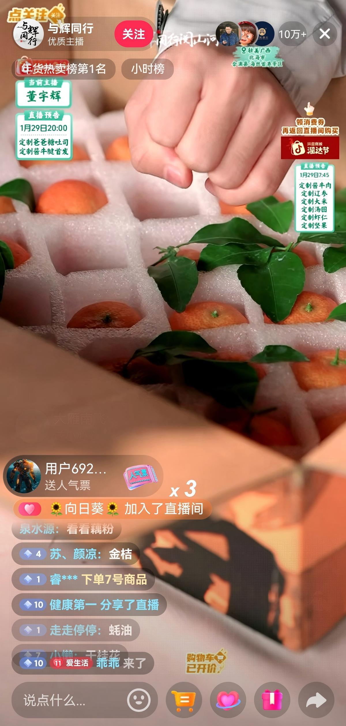 1月28日至30日,“與輝同行·閱山河”廣西專場直播火熱開啟。南寧威寧集團下屬企業南寧供應鏈集團憑借自身供應鏈優勢與新開拓的電商板塊,緊抓春節前消費旺季,成功推動廣西砂糖橘、甘蔗、七彩番茄等特色農產品通過“與輝同行·閱山河”廣西專場銷往全國。在沖上年貨熱賣榜第1名的首日直播中,銷售甘蔗10萬單、砂糖橘8萬單、七彩番茄1萬單,以總計約19萬訂單、500萬元銷售額的佳績,實現了一季度振奮人心的開局。