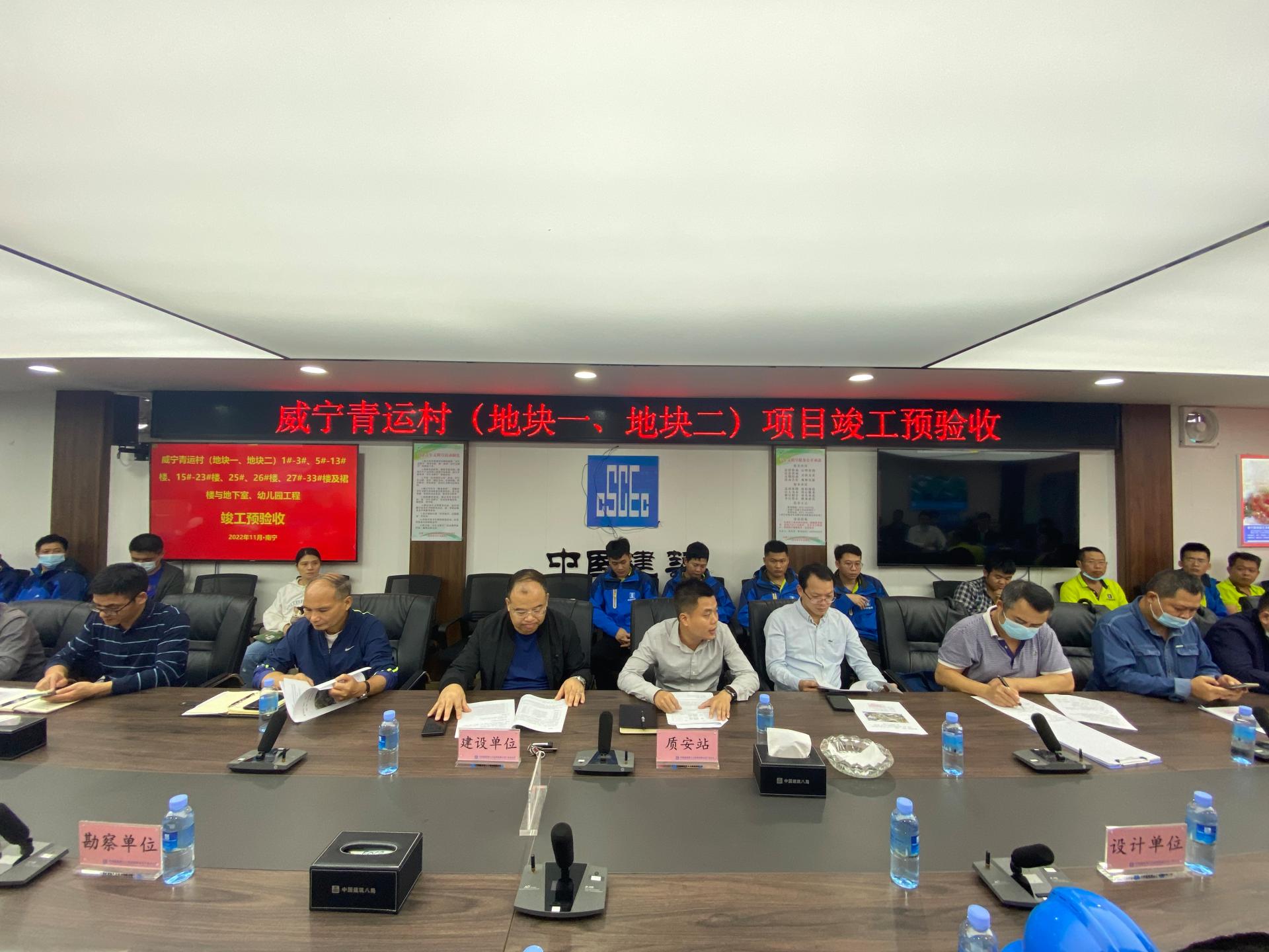 11月17-18日,由南寧市建設工程質量監督站、項目業主單位、監理單位、設計單位、勘察單位等多家單位共同組成聯合預驗收組,對威寧青運村項目進行預驗收。經現場實地查驗、綜合評審,威寧青運村順利通過預驗收。