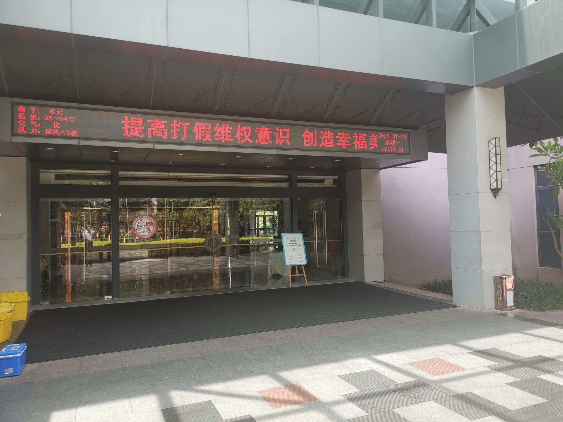如南寧大地飛歌集團、民族影城、五象山莊、銀河大酒店等利用餐飲服務行業人流量大、受眾多、范圍廣的宣傳優勢,通過宣傳板報、LED屏滾動播放“加強知識產權保護,營造良好營商環境”“尊重知識、崇尚創新、誠實守法、公平競爭”等宣傳標語。