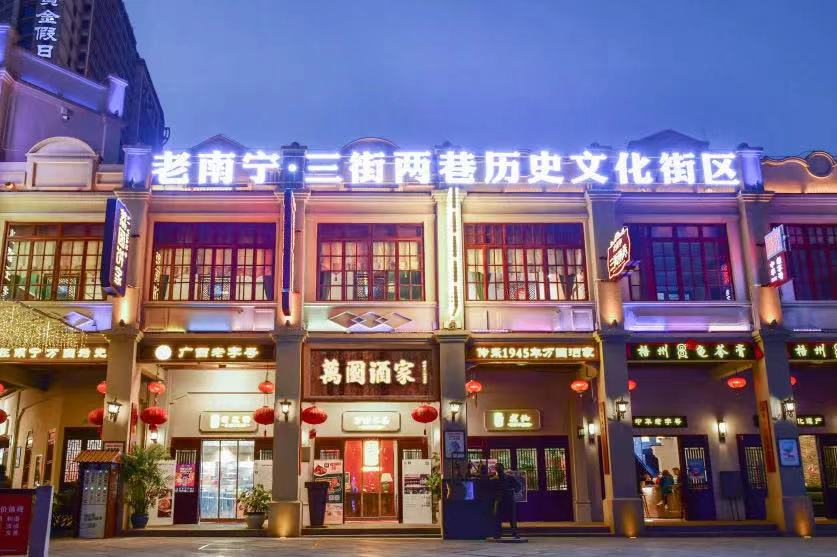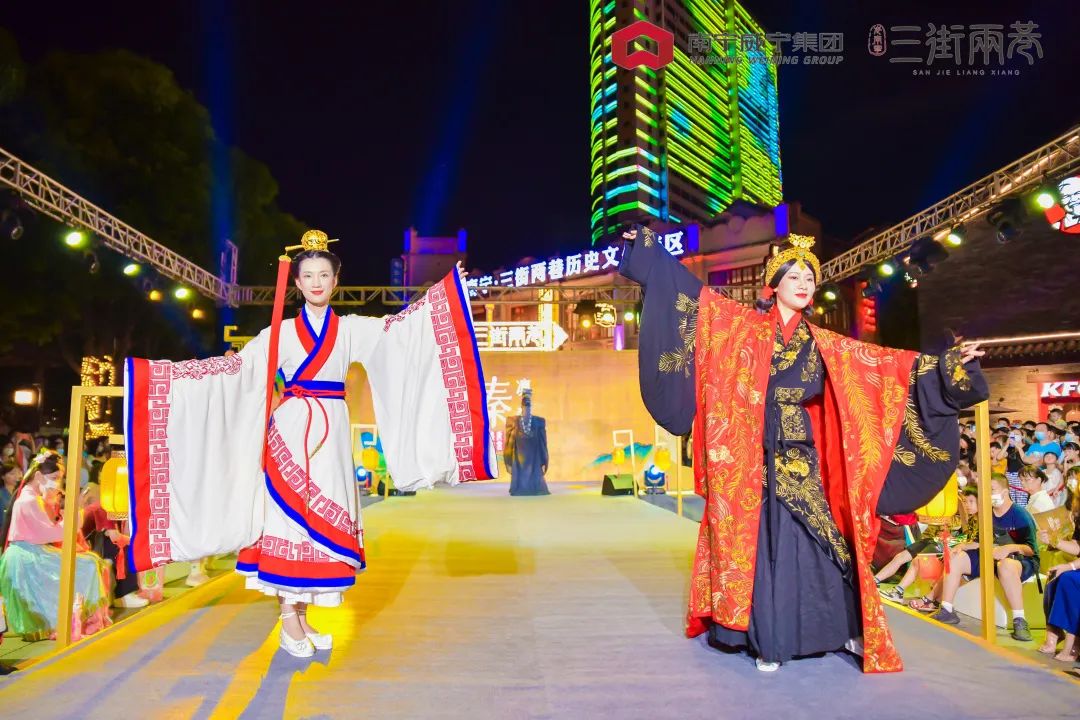 威邕城市運(yùn)營開展頭腦風(fēng)暴,創(chuàng)新策劃舉辦活動。“鴻福臨門邕城盛市”三街兩巷二期新街開放暨倉西門揭幕儀式系列活動、三街兩巷新春嘉年華沉浸式國風(fēng)系列活動、二期開街活動暨首屆國風(fēng)文化節(jié)等大型主題活動共計10余次,得到中央廣播電視總臺、廣西日報、廣西電視臺、南寧市主流媒體等廣泛報道,獲得社會各界與廣大游客的廣泛關(guān)注。國慶期間,“三街兩巷首屆國風(fēng)文化節(jié)”活動,游客接待量超70萬人次,同比2021年國慶假期增長40%,營業(yè)額超5000萬元,同比2021年國慶假期增長317%。主題活動的成功舉辦,促進(jìn)了街區(qū)人流量、消費(fèi)量“雙量”提升,極大的提升了商戶的經(jīng)營信心,促進(jìn)了招商工作的推進(jìn)。(圖5.三街兩巷2022年國慶活動)