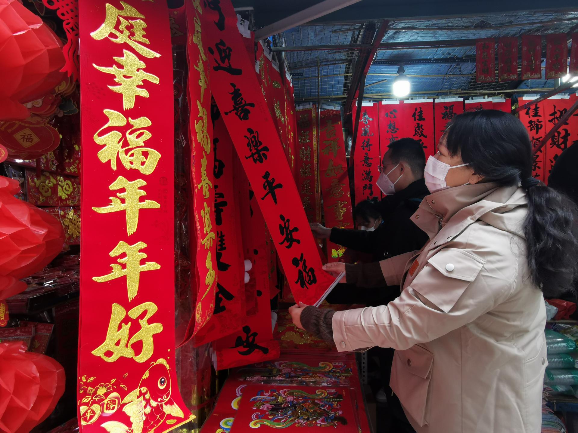 在飛鳳市場、水街市場、南寧交易場等“老南寧”們耳熟能詳的農貿市場、商場,各攤位上新鮮肉蛋、海鮮、蔬菜、水果、副食等民生商品應有盡有,各類炒貨、糖果、酒水、新春禮盒等擺滿了貨架。市民們喜氣洋洋提著大包小包競相選購豐富多樣的年貨、購買對聯燈籠。