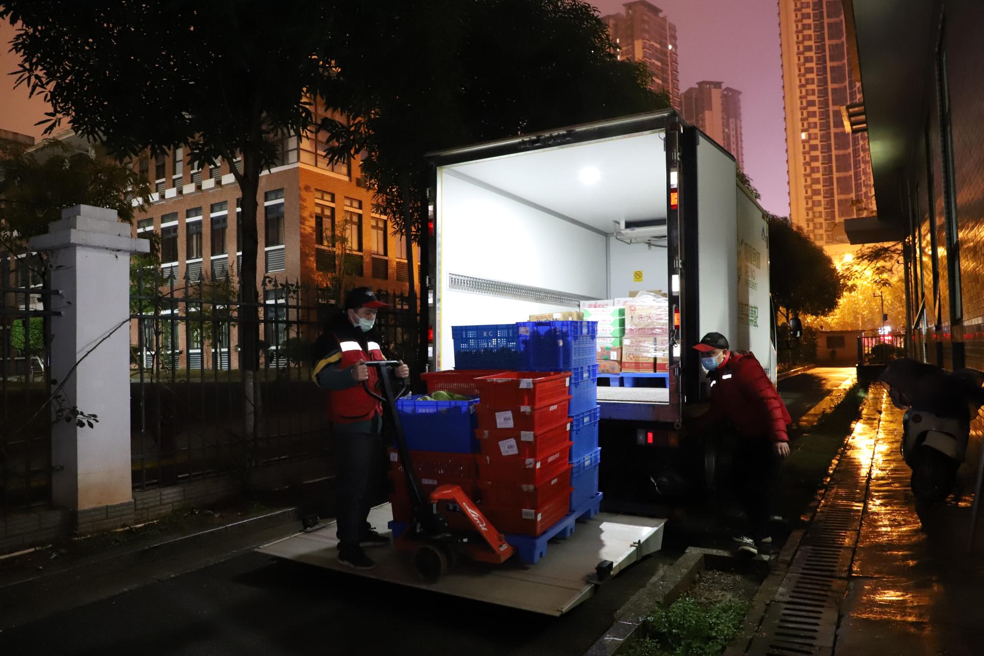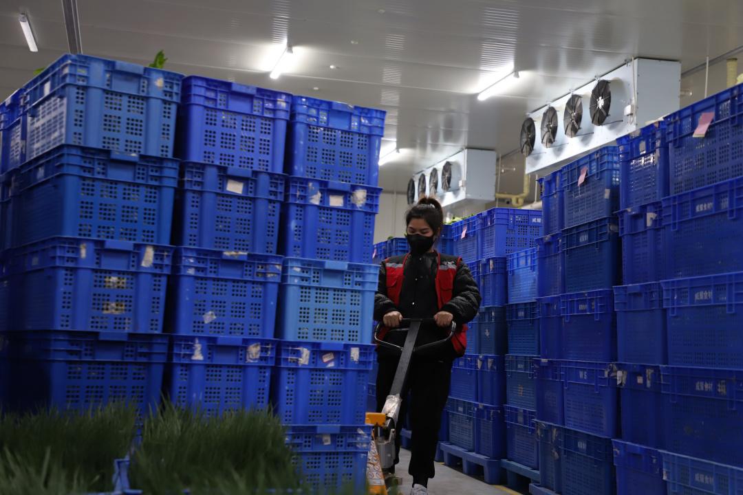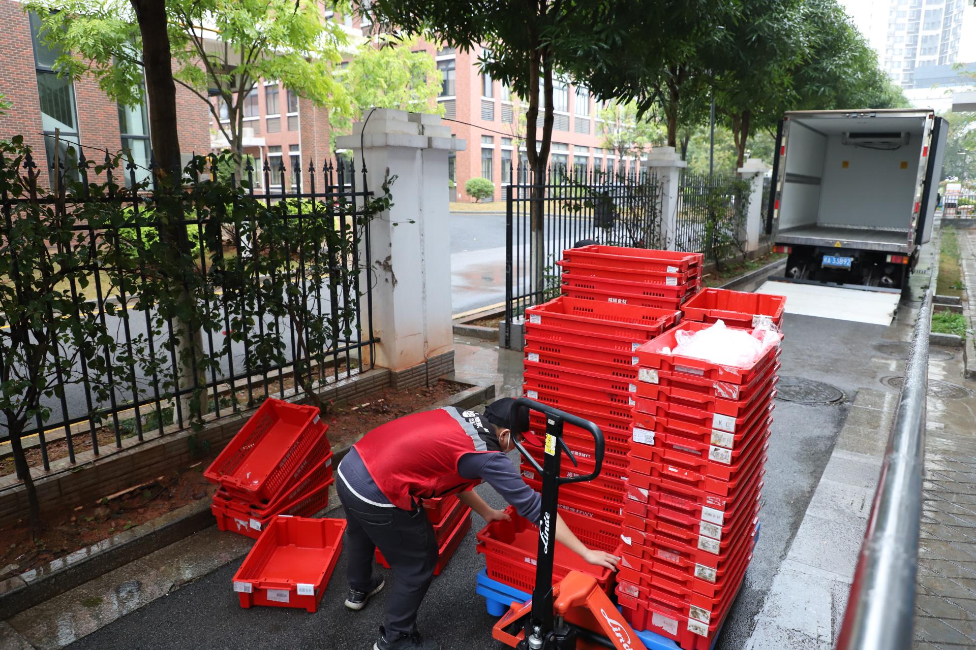 各基地分揀組將供應商運過來的食材一一分發(fā)到對應的學校