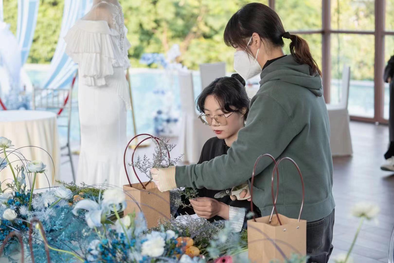 以婚禮堂為代表的一站式婚禮服務越來越受到年輕人的歡迎與追捧,五象山莊緊緊抓住新人的消費需求點,帶著滿滿的誠意,在活動現場聯合南寧市知名婚慶商家,共同為新人們準備了多款一站式婚宴包價禮遇、妝照試紗體驗、婚禮花藝DIY體驗以及主題甜品臺,還有打卡送禮、當天預訂婚宴額外享受多重好禮等禮遇活動,給“怕麻煩”的新人提供一站式服務。