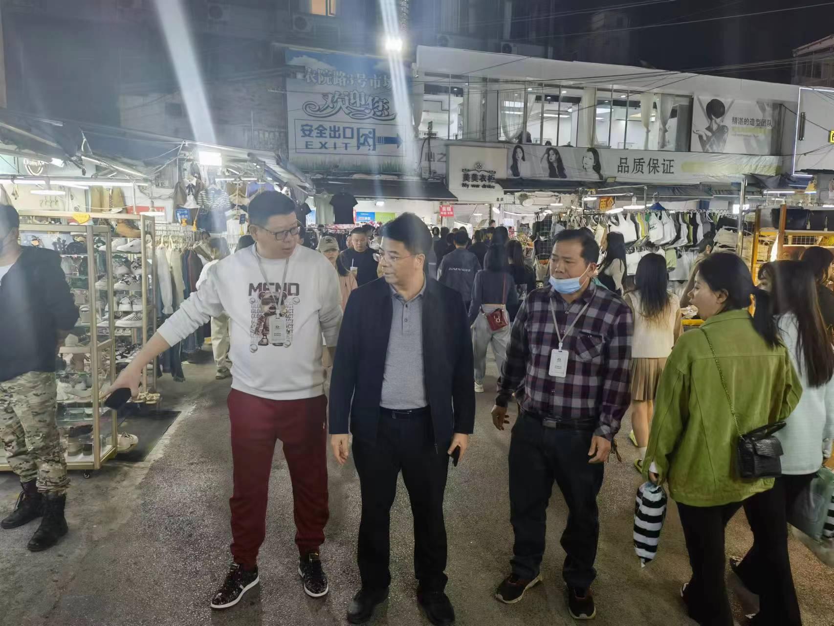 入夜后的平等街夜市、農院路3號夜市燈火璀璨,洋溢著熱鬧的城市煙火氣。韋義勇帶隊實地查看平等街夜市鞋行、農院路3號夜市成衣行及小飾品攤位,詳細了解攤位經營、市場管理及環境衛生等情況,現場聽取平等街夜市、農院路3號夜市在落實市場管理,激活“夜經濟”活力等方面經營舉措的介紹。