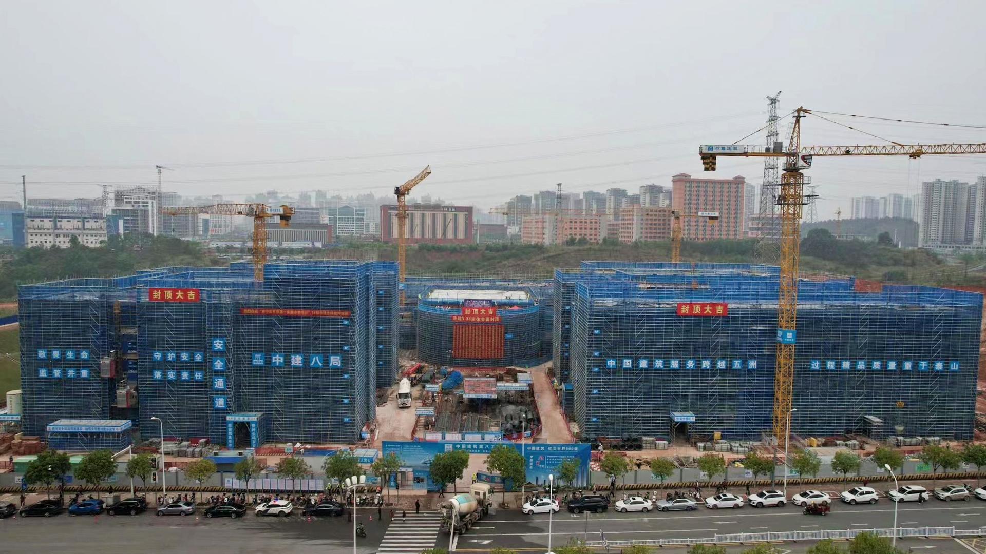 項(xiàng)目從破土動(dòng)工到主體結(jié)構(gòu)封頂,歷時(shí)100余天。施工期間在各方努力下,克服工期緊、場(chǎng)地受阻等因素,強(qiáng)抓工期同時(shí)保證工程質(zhì)量和施工安全,優(yōu)質(zhì)高效地完成了既定項(xiàng)目建設(shè)節(jié)點(diǎn)目標(biāo)。