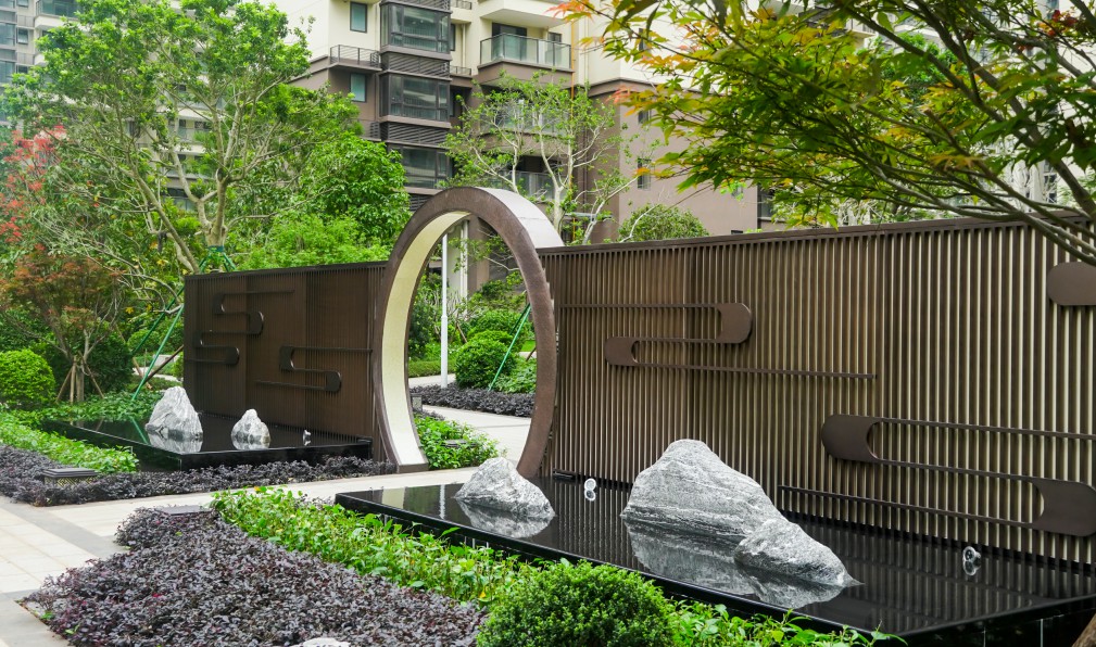 本次媒體見面會,青運村團隊帶領嘉賓深入園林內部感受項目的布景造林藝術。放眼望去,種類繁多的喬木、灌木和花木生機盎然。亭臺樓閣疊水環繞,名貴的太湖石、羅漢松矗立其中,長廊兩旁嵌有水墨畫屏風,植被的搭配、布局極具層次,體現出精美和質感,一步一風景、一景一陶然的雅致讓大家有一種心曠神怡的體驗。項目園林通過新中式風格大氣、風雅、匠心的傳達,展現出威寧房地產公司傳承匠心獨運、精工品質的初心。