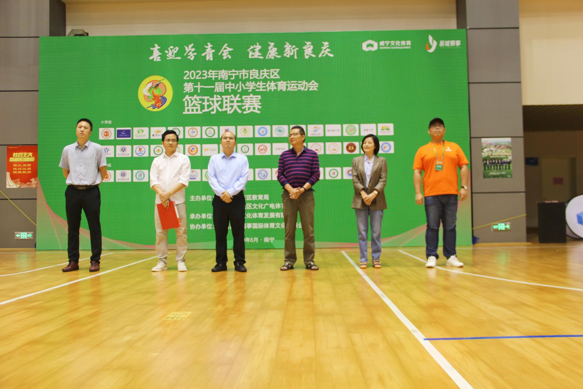 5月8日,由南寧市良慶區教育局、南寧市良慶區文化廣電體育和旅游局主辦、南寧威寧文化體育發展有限公司承辦的2023年南寧市良慶區第十一屆中小學生體育運動會籃球聯賽開幕式在廣西體育中心籃球中心舉行。南寧市良慶區教育局副局長潘波、南寧市良慶區文化廣電體育和旅游局副主任科員盧學能、南寧威邕城市運營集團有限公司副總經理林國城、廣西耀象文化傳播有限責任公司副總經理劉吉堯、廣西邕城賽事國際體育文化有限公司總經理羅熹等領導和嘉賓出席開幕儀式。潘波副局長致辭并宣布籃球聯賽開幕,運動員代表、裁判員代表莊嚴宣誓。