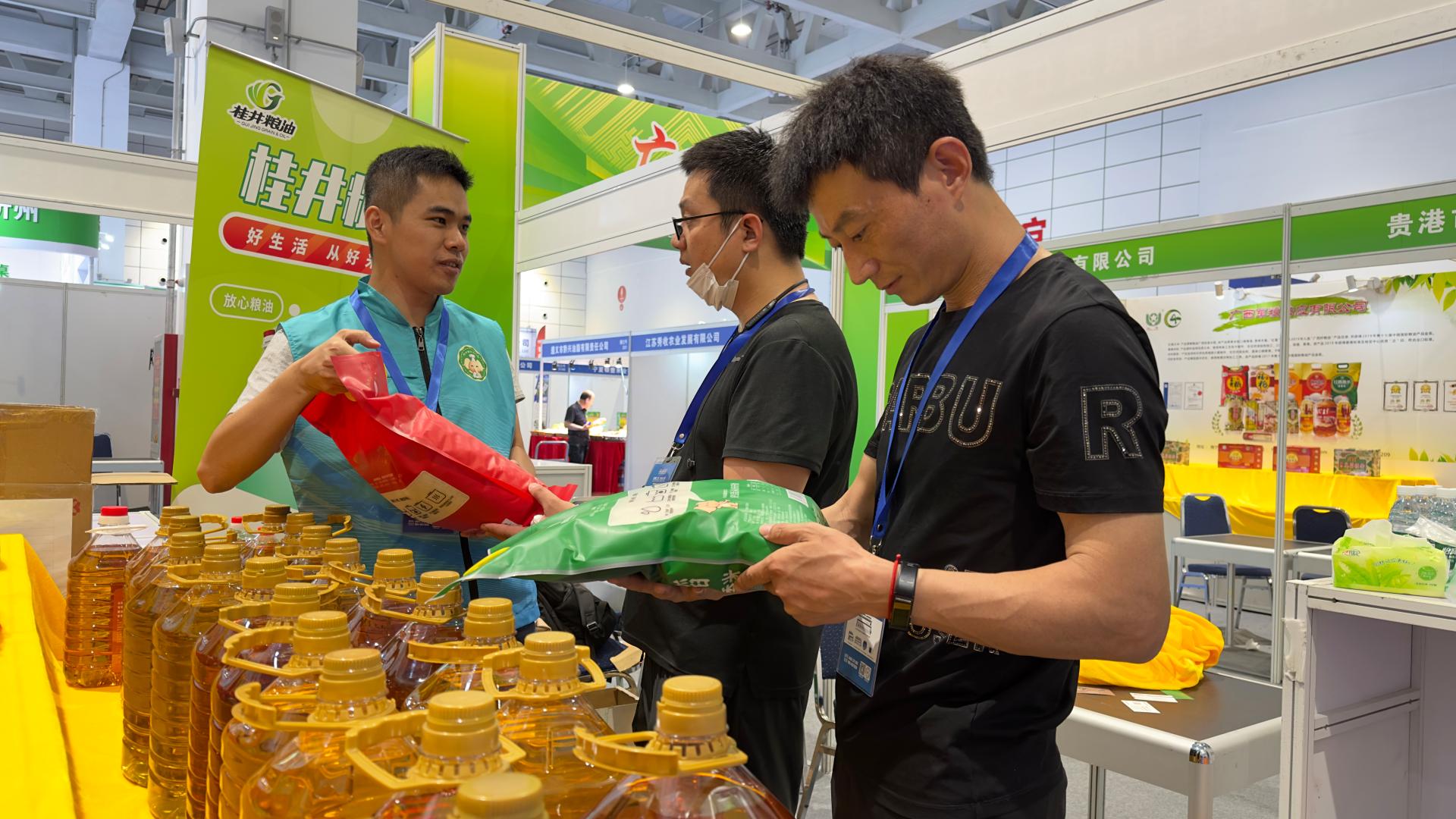 展會一開始,儲備糧公司“桂井”牌糧油產品的展臺便吸引了一眾客商駐足參觀、品嘗試吃,由公司金泰銀針米、荷花香米等產品領銜的廣西香米以清香、軟糯、回甘等獨特而濃郁的南方風味贏得了現場觀眾一致稱贊和好評。
