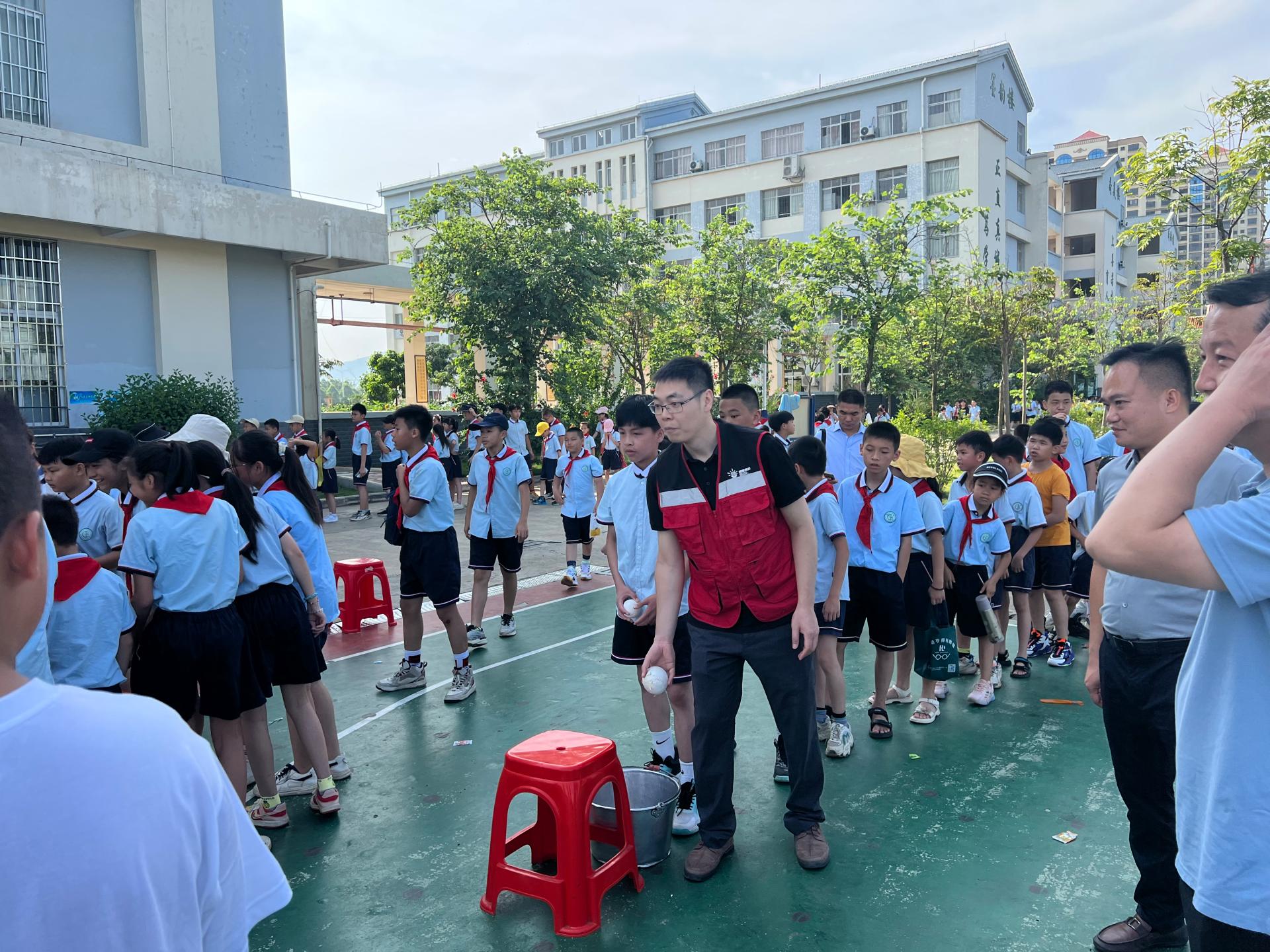 在各活動現場,少先隊員們熱情地為隆安、賓陽分公司員工代表戴上鮮艷的紅領巾,并帶領各分公司員工代表一起參與拋紙團、定點投籃及運球競賽等趣味小游戲,或是二人成組、五人成隊,或是你追我趕、歡笑盈盈,現場一片歡樂、祥和的節日氛圍。