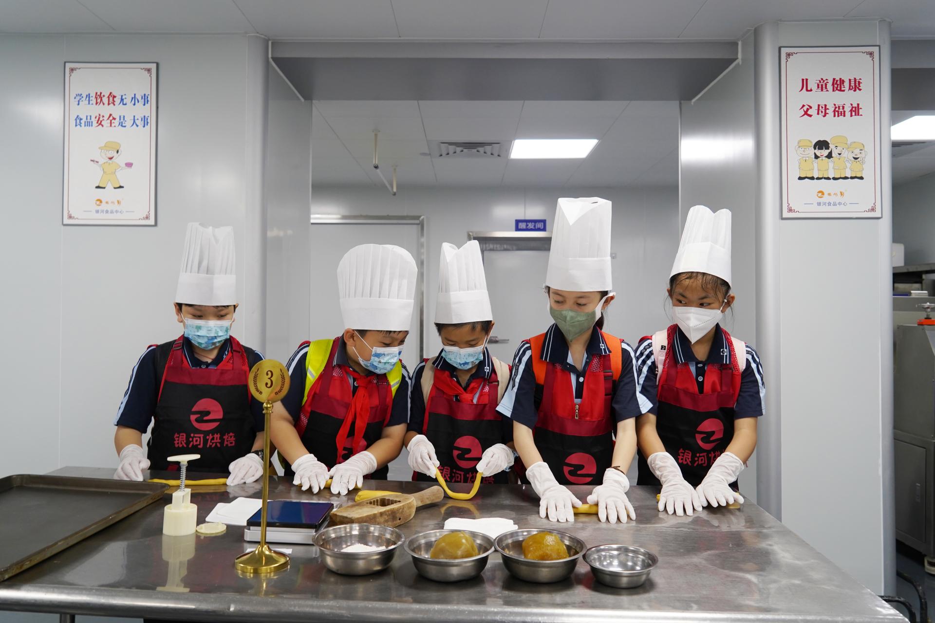 為加強小學生營養健康教育,引導學生們養成科學的生活方式和良好的飲食習慣,在第34個“中國學生營養日”,銀河大酒店食品中心迎來了南寧廣播電視臺衡陽路小學和翠湖路小學紅領巾校園記者站的120名小記者。小記者們齊聚一堂,了解食品制作過程,體驗傳統月餅制作方法,學習食品營養知識,并在現場進行新聞寫作、新聞采訪等研學活動。