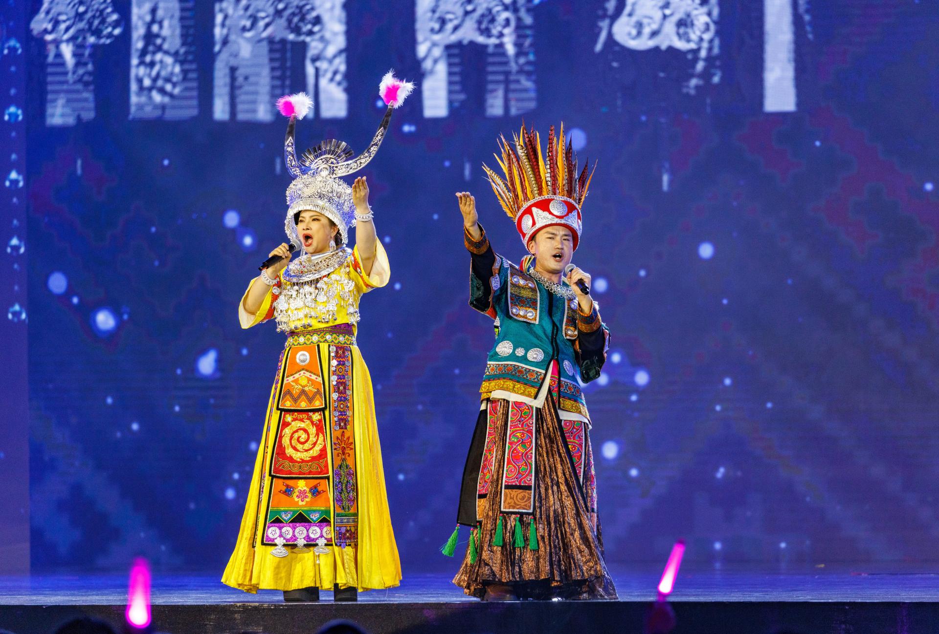 當晚的演出上,不僅有壯語歌曲《唄儂情深》、新民歌《連心歌》、京族民歌《洗貝歌》、云南羅羅拔四團隊帶來的民俗大秀《跳菜》等極具地域民族特色的演出,也有來自印度尼西亞、馬來西亞、俄羅斯等國的歌者帶來東盟乃至“一帶一路”沿線國家的經典民歌。貴州游方組合的《對歌對到日落坡》,壯族民歌《天上星星伴月亮》等作品把傳統藝術與現代表現手法完美融合,唱出了“新民歌”的無窮魅力;2022《中國好聲音》全國總冠軍梁玉瑩、擁有逾四千萬粉絲的歌手唐藝以及額爾古納樂隊等傾情獻唱,吸引了更多年輕觀眾的矚目;南寧市天桃實驗學校的孩子們用清澈的嗓音唱出新時代八桂好少年的風范,贏得現場觀眾陣陣掌聲。