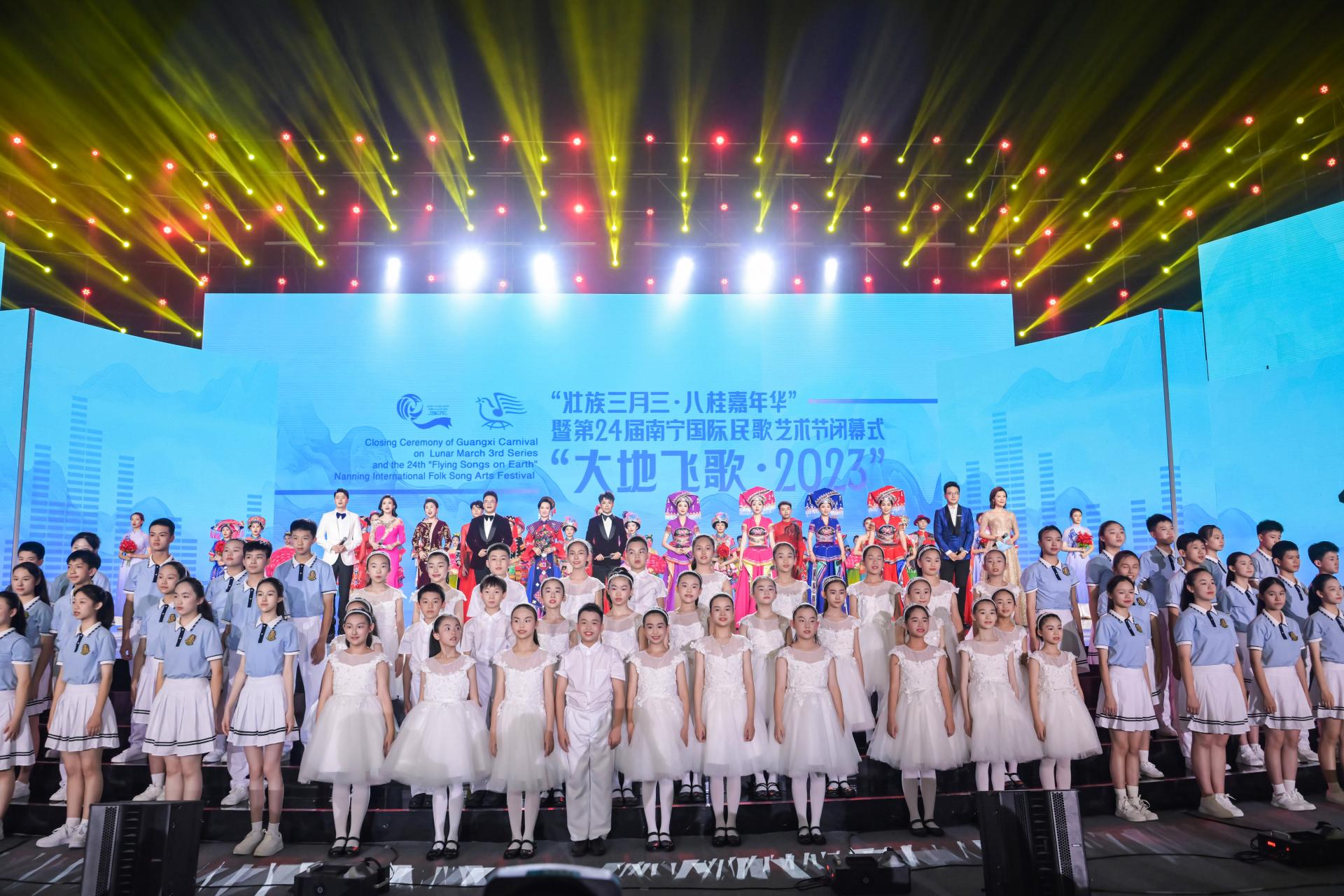 5月21日,“壯族三月三·八桂嘉年華”暨第24屆南寧國際民歌藝術(shù)節(jié)閉幕式“大地飛歌·2023”(以下簡稱“大地飛歌·2023”)在廣西體育中心體育館精彩上演,于5月22日通過電視、廣播、網(wǎng)絡(luò)等平臺播出。本屆南寧國際民歌藝術(shù)節(jié)首次與“三月三”進(jìn)行創(chuàng)新融合,主題更突出,內(nèi)容更豐富,形式更新潮,更展民歌風(fēng)采,更具國際風(fēng)范,更顯時尚風(fēng)韻,全力打造一場思想精深、藝術(shù)精湛、內(nèi)容精美、效果精彩的文化藝術(shù)盛宴。