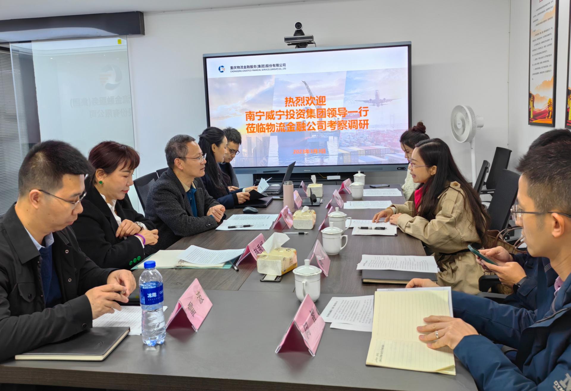 近日,南寧威寧集團總會計師郭日民帶隊赴重慶交運優鏈云食城供應鏈有限公司、重慶物流金融服務集團小額貸款有限公司考察。