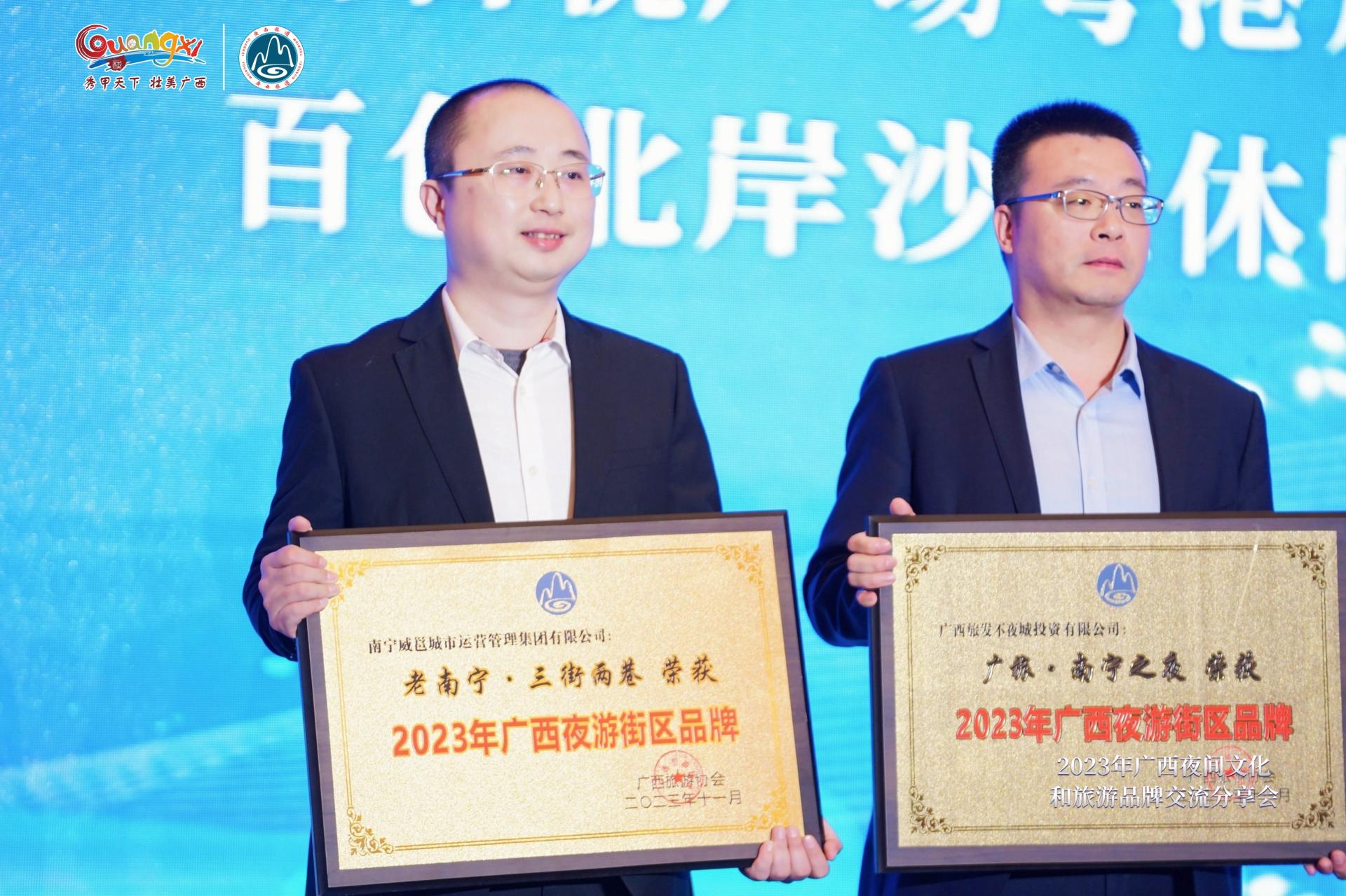 2023年12月5日,由廣西壯族自治區文化和旅游廳等舉辦的2023年廣西夜間經濟高質量發展交流會在南寧舉辦,并同步開展2023年廣西夜間文化和旅游品牌交流分享會,在會上,由威邕城市運營集團運營管理的邕州古城·三街兩巷入選“廣西夜游街區品牌”,廣西體育中心入選“廣西夜健場所品牌”,廣西文化藝術中心入選“廣西夜間演藝品牌”,成為唯一斬獲三項品牌的企業。