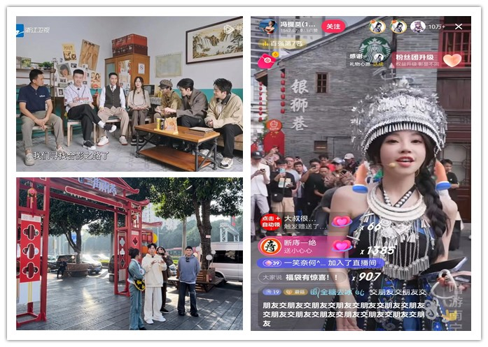 邕州古城·三街兩巷不僅吸引了眾多市民、游客前來打卡、拍照,更成為了眾多明星、網(wǎng)紅來到南寧必打卡的地方。央視綜藝《樂在旅途》“南寧仔”胡夏化身導(dǎo)游,與希林娜依·高、艾熱、張尕慫等人氣明星探訪邕州古城·三街兩巷,并在景區(qū)內(nèi)的萬國酒家品嘗廣西特色美食。浙江衛(wèi)視《超燃美食記3》的嘉賓蕭敬騰、孟佳、楊九郎等明星在邕州古城·三街兩巷的新華照相院體驗了一波用七十年代老膠片相機拍攝復(fù)古照片的有趣經(jīng)歷。在旅行日記節(jié)目《大地之旅》中,廣西山水體驗官王麗坤、旅游達人冒險雷探長也在邕州古城·三街兩巷探訪街區(qū)的美景和美食。“網(wǎng)紅主播”馮提莫則是身著民族服飾,一邊唱歌一邊用鏡頭不斷記錄邕州古城·三街兩巷所展現(xiàn)的“老南寧”歷史文化。抖音直播1小時就吸引了超過1200萬觀看量,話題熱度高居南寧本地榜第一。