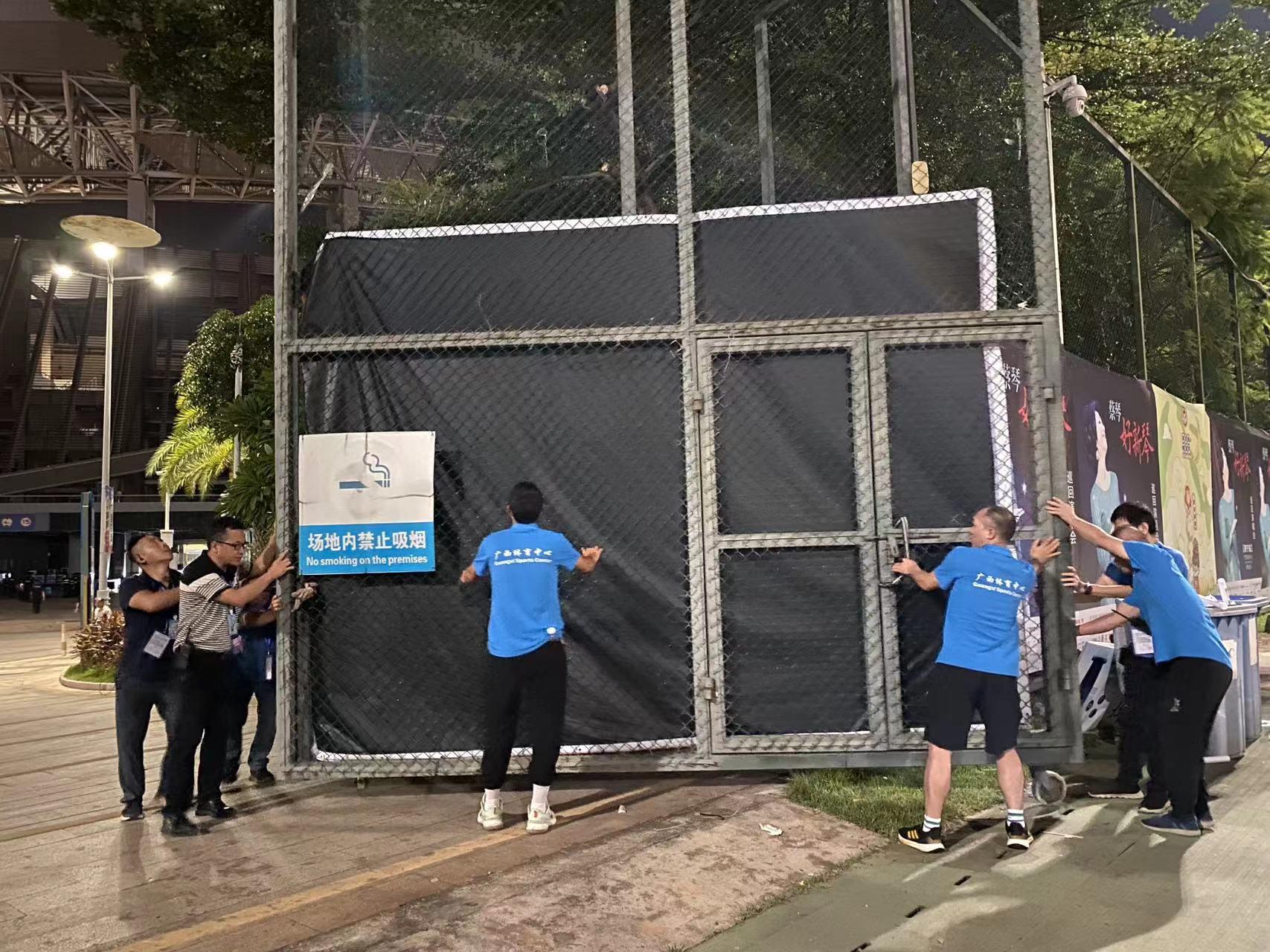 演唱會結束大家齊心協力關上演出現場大門