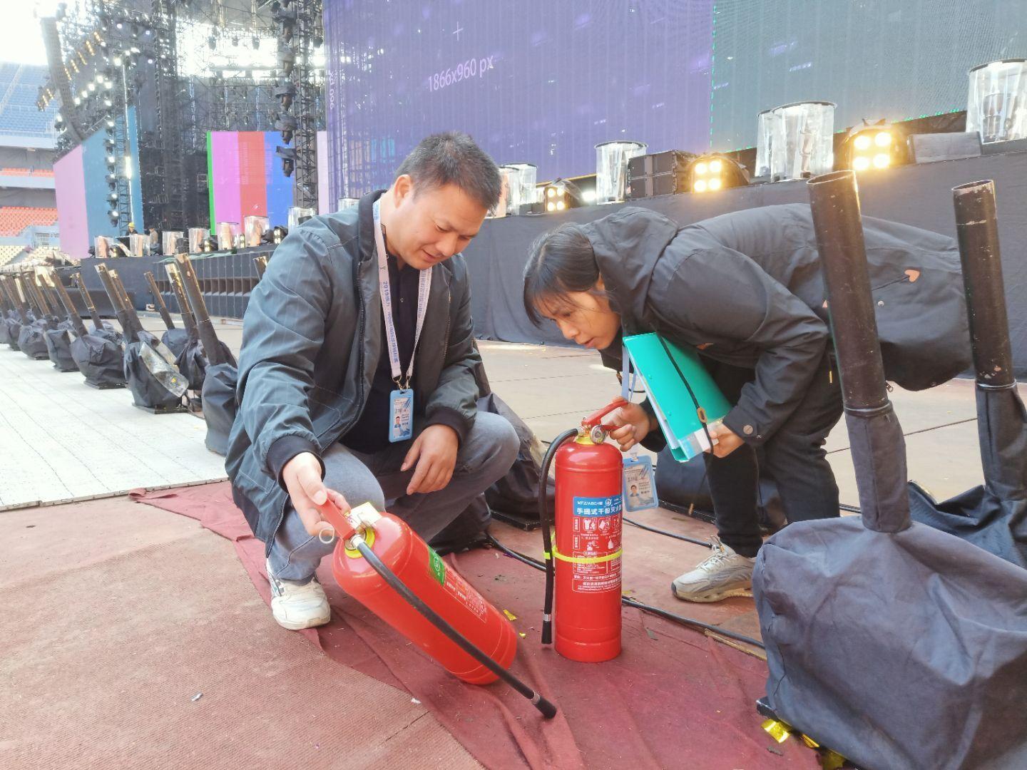 演唱會前對舞臺前滅火器進行檢查