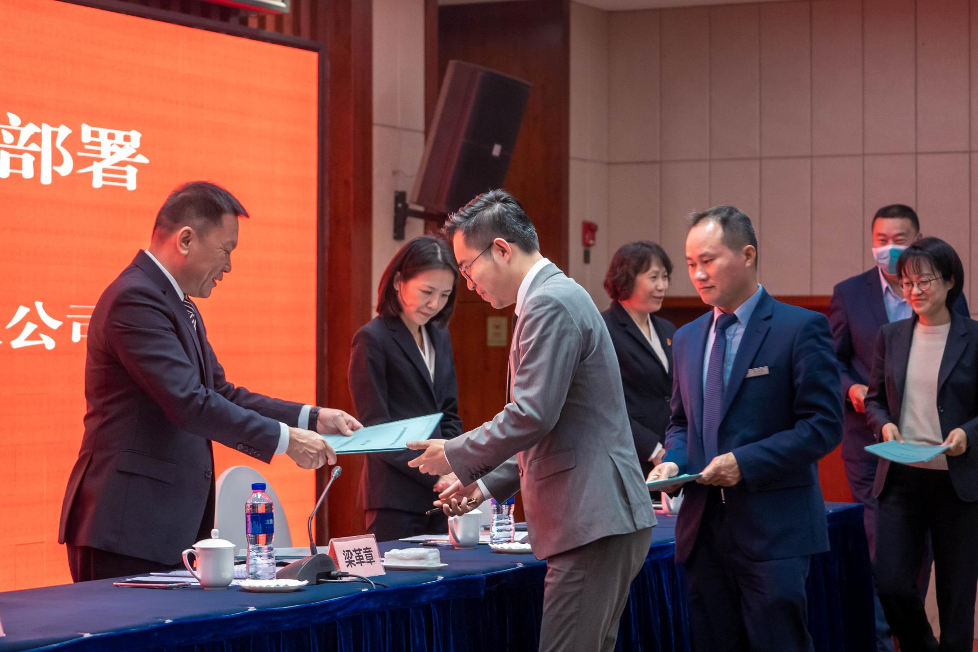 各部門負(fù)責(zé)人向執(zhí)行董事、總經(jīng)理梁革章遞交2024年安全生產(chǎn)目標(biāo)管理責(zé)任書