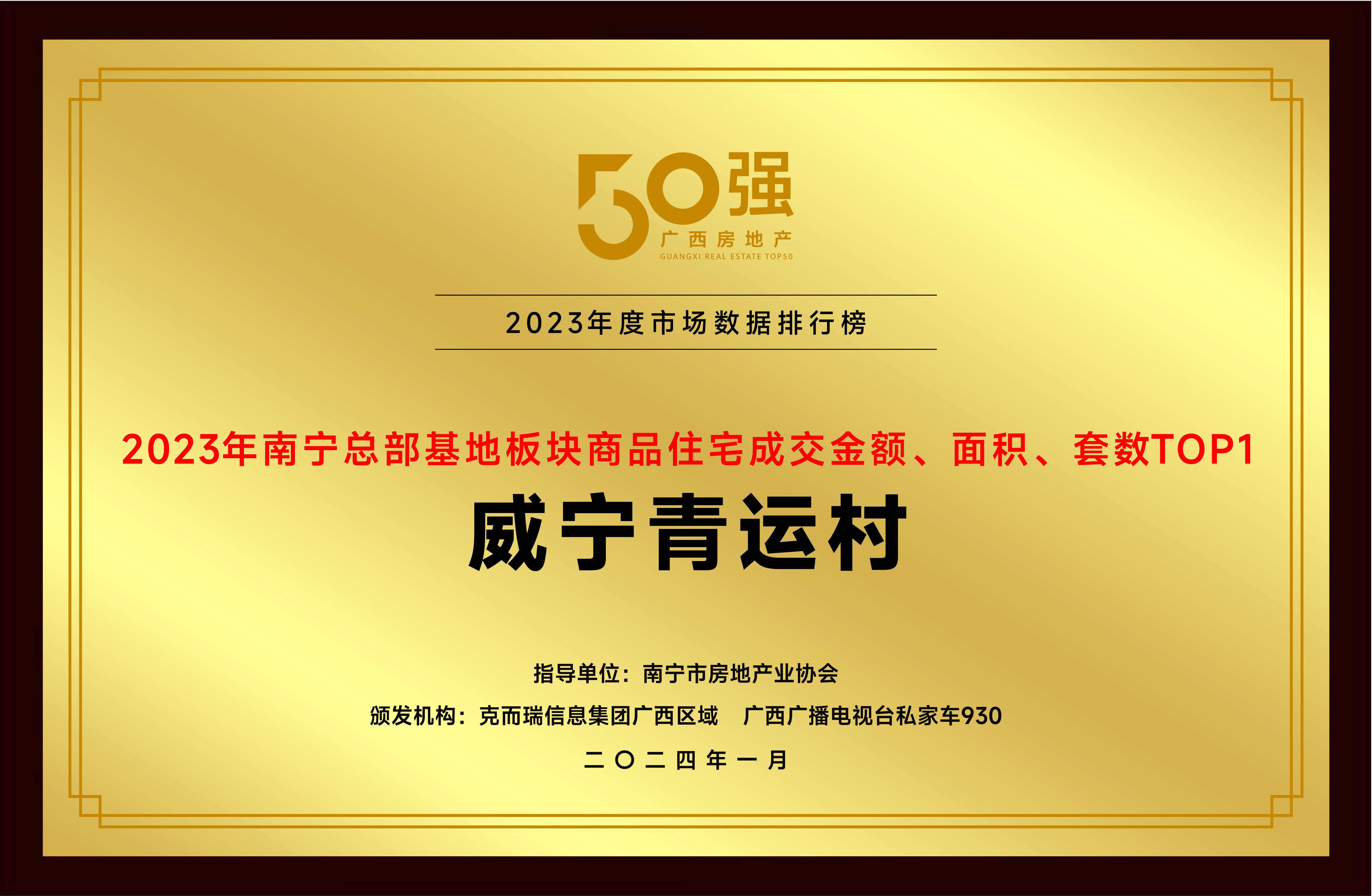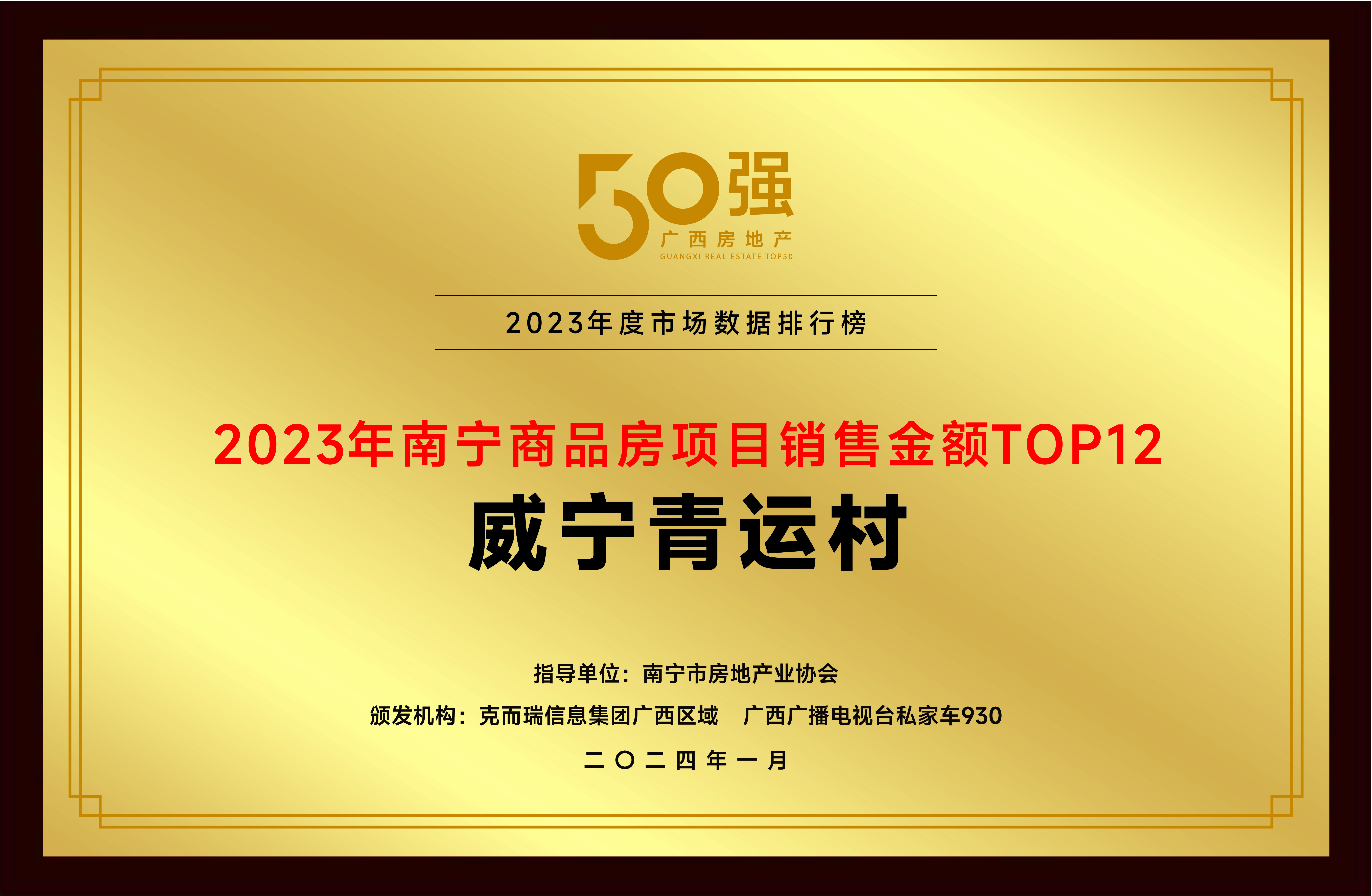 作為廣西本土國企,在過去一年,公司憑借自身項目布局和運營優勢,產品力和交付力得到市場認可,為市場和購房者注入信心和活力。公司以穩健的實力,榮獲本次盛典行業“2023年廣西房地產本土國企全口徑、權益銷售金額TOP5”“2023年南寧房企權益銷售金額TOP12”“2023年廣西地產綜合運營實力企業大獎”等獎項。