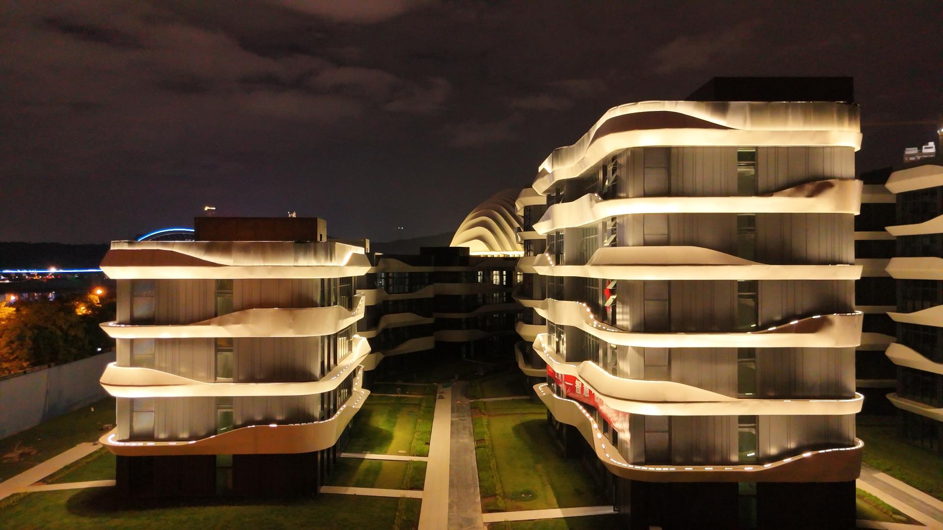 東盟威寧文創中心的夜景亮化工程,有亮度、有溫度,為五象新區聚人氣、促發展,也給城市夜景新添了一道靚麗的風景線。為達到效果,該亮化工程可謂藏匿了很多“小心思”。在建筑的外立面、高架平臺、異形柱部分通過燈光的變化,形成左右或上下的流動效果,模擬流水潺潺,變化豐富,形成不同的場景效果。