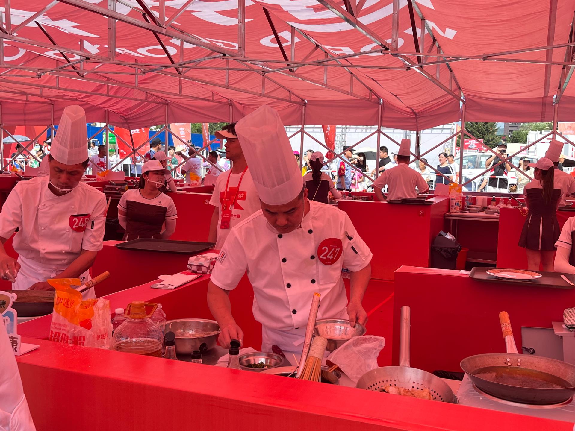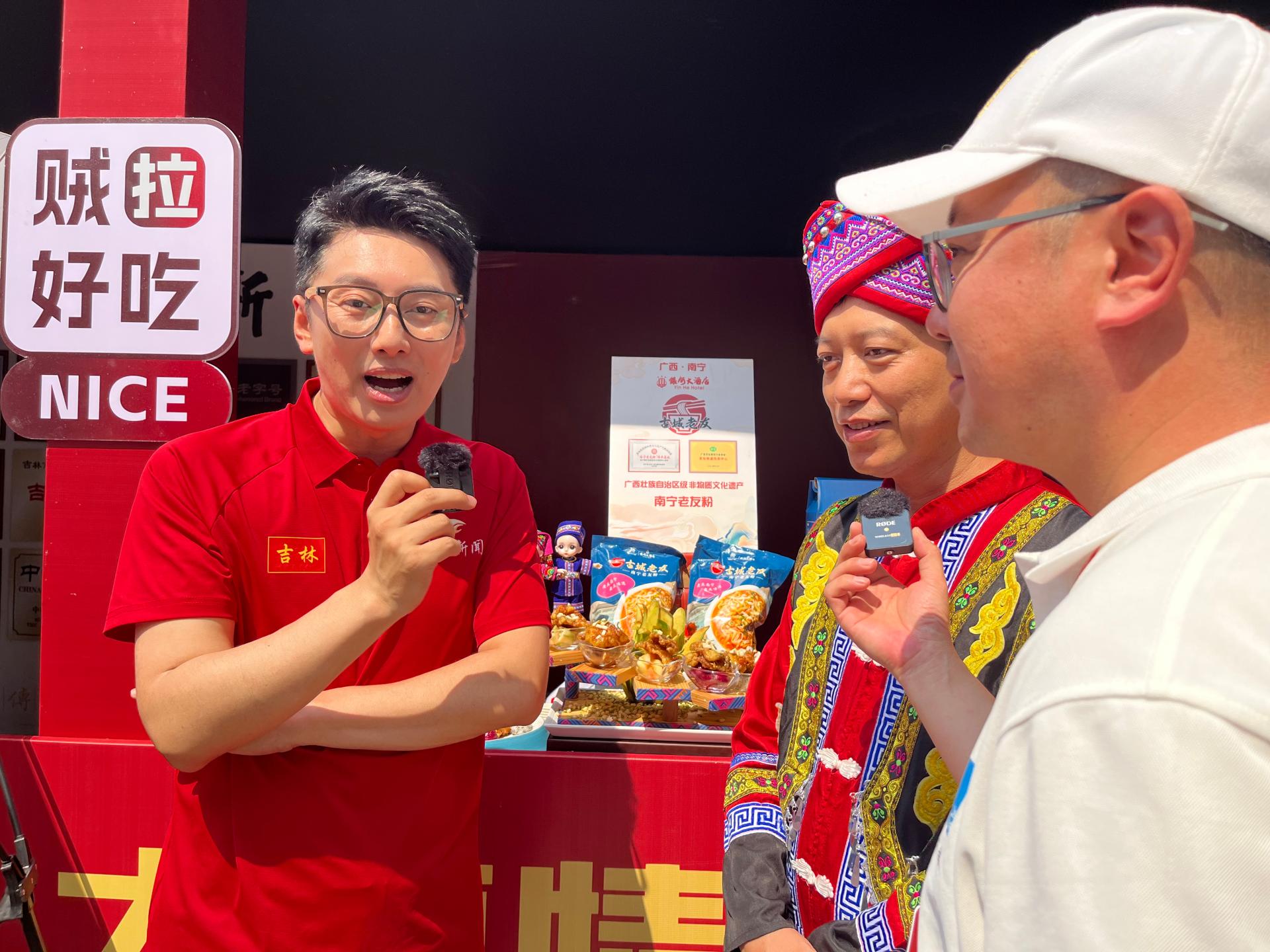 除參加“世界鍋包肉大賽”的廚藝比拼外,銀河大酒店還將自營新品“南寧老友粉”和代表銀河老味道的邕城經(jīng)典傳統(tǒng)點心帶至大賽現(xiàn)場推廣。團隊成員穿起壯鄉(xiāng)特色的服飾,在現(xiàn)場設(shè)立南寧“小砂糖橘”老友商品展位,煮制南寧老友粉,分發(fā)邕城傳統(tǒng)點心,邀請吉林市民品嘗。在展位現(xiàn)場,酸辣濃香的“古城老友粉”獲吉林市民大加贊賞,紛紛現(xiàn)場排隊“嗦粉”,而身穿壯鄉(xiāng)服飾的“大砂糖橘”更是在比賽現(xiàn)場成為媒體采訪和市民的合影對象,團隊現(xiàn)場組織品嘗、銷售南寧老友粉人氣火爆,現(xiàn)場游客人數(shù)、直播觀看人數(shù)、短視頻抖音號播放數(shù)合計超300萬人次。