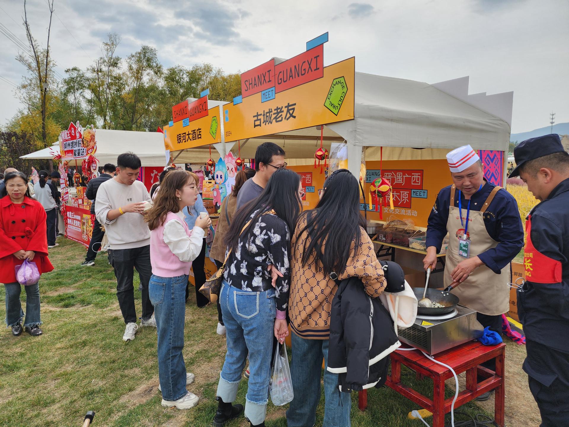 在現場金黃的麥田邊上,銀河大酒店設立“古城老友”展臺,南寧老友粉市級代表性傳承人——陳波支起爐灶,為現場市民帶來一場“當南寧老友味道遇上山西面食”的美食文化“聯姻”技藝展示,炒鍋有節奏地翻動,散發出濃濃的香氣,引得過往市民紛紛駐足?!斑@是我們的‘老友面’,別具特色的南寧老友食材在煙火的爆炒下,與山西面食融合,完美突出了兩地美食的特點”陳波邊烹飪邊向市民介紹道。此次銀河大酒店創新推出“老友味道與山西面食碰撞”產品,為兩地美食文化融合做了大膽嘗試,獲得了活動現場食客的追捧。