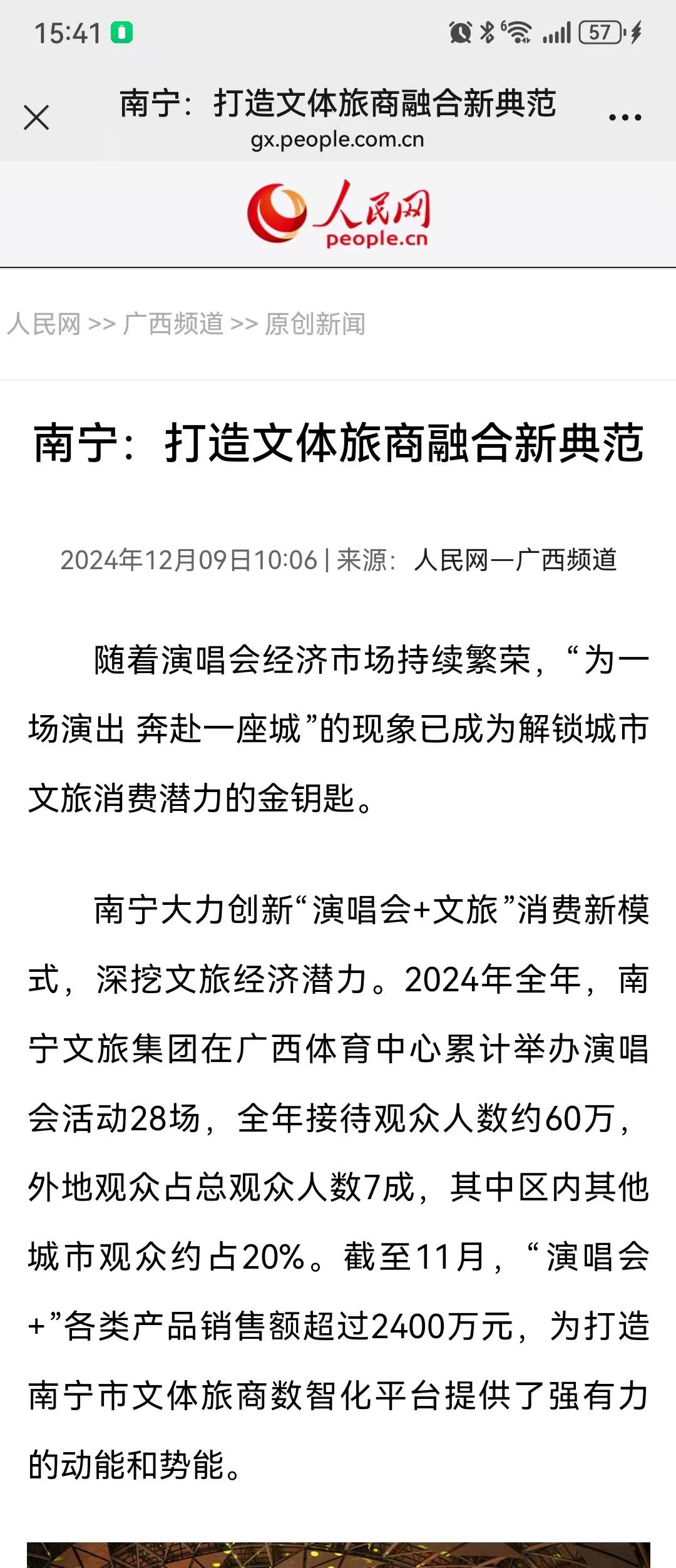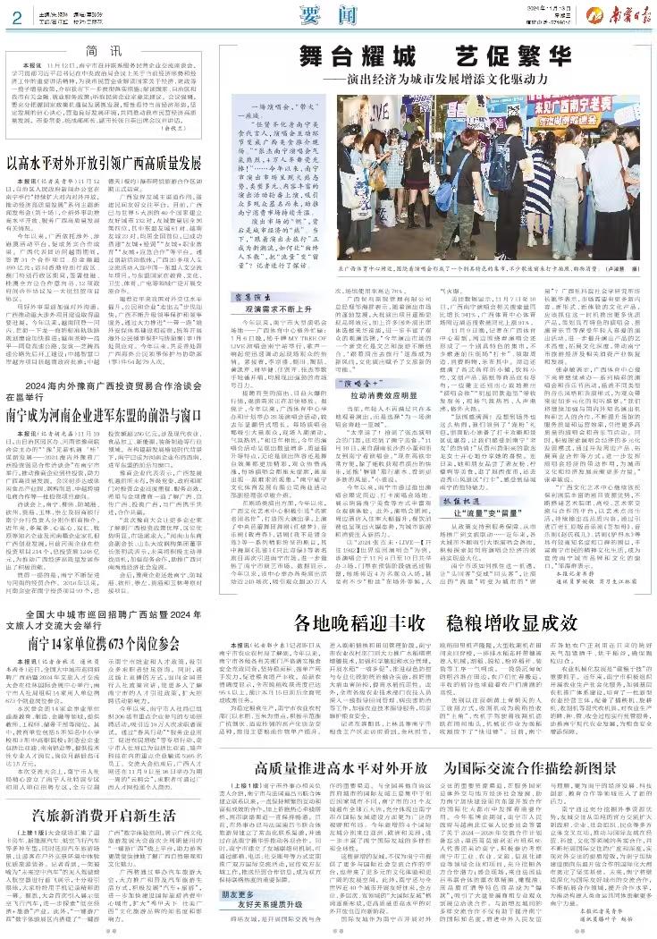 南寧文旅集團副總經理林國城在接受媒體采訪時表示,南寧文旅集團將發揮南寧市國有文旅平臺公司的作用,推動大型、重量級的文藝演出加速加密落地,對有意向在南寧市舉辦個人演唱會的藝人加快合作步伐,力爭早日引進。同時,將依托廣西體育中心舉辦的大型演出和賽事,持續關注和打造文旅消費新熱點,創造多重體驗感的文旅消費新場景。