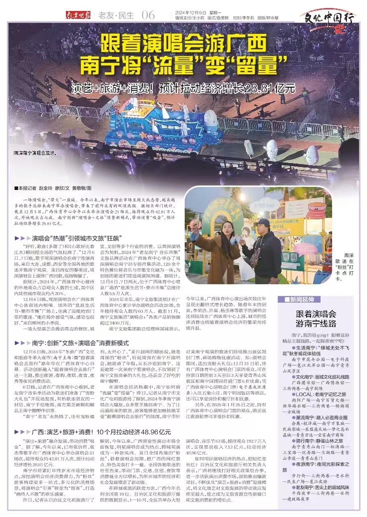 近日,南寧文旅集團組織了國家級、區級和市級共計20家媒體單位參與“南寧文旅集團提振演唱會經濟——周深演唱會南寧站媒體行”。