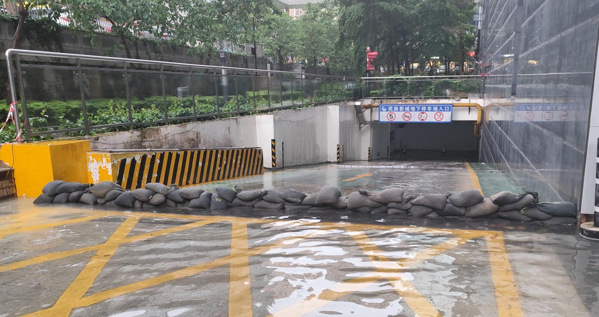 南寧大地飛歌集團通過堆壘防汛沙袋防止積水流入地下室