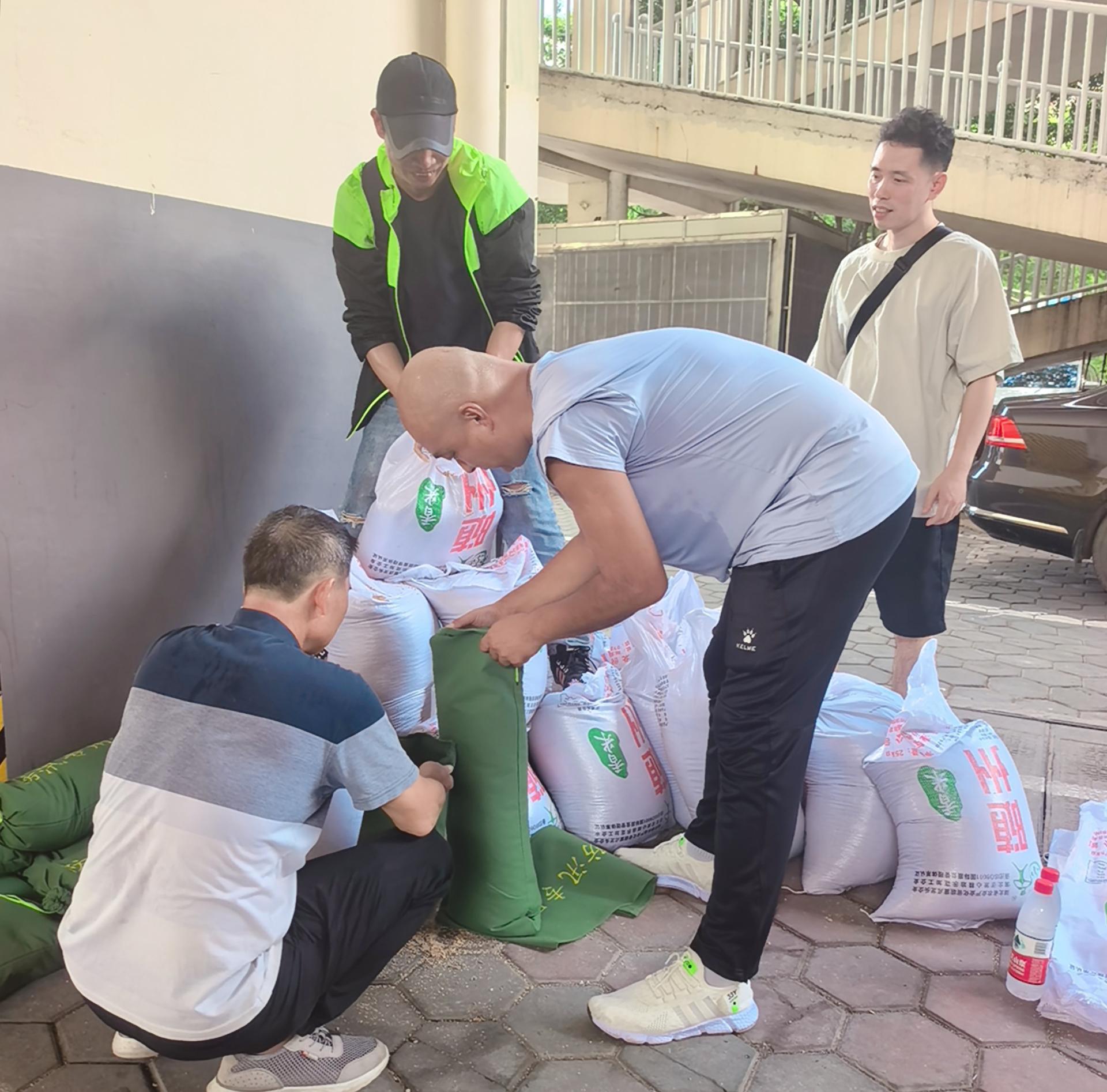 公司資產專管員現場協助制作防洪沙袋