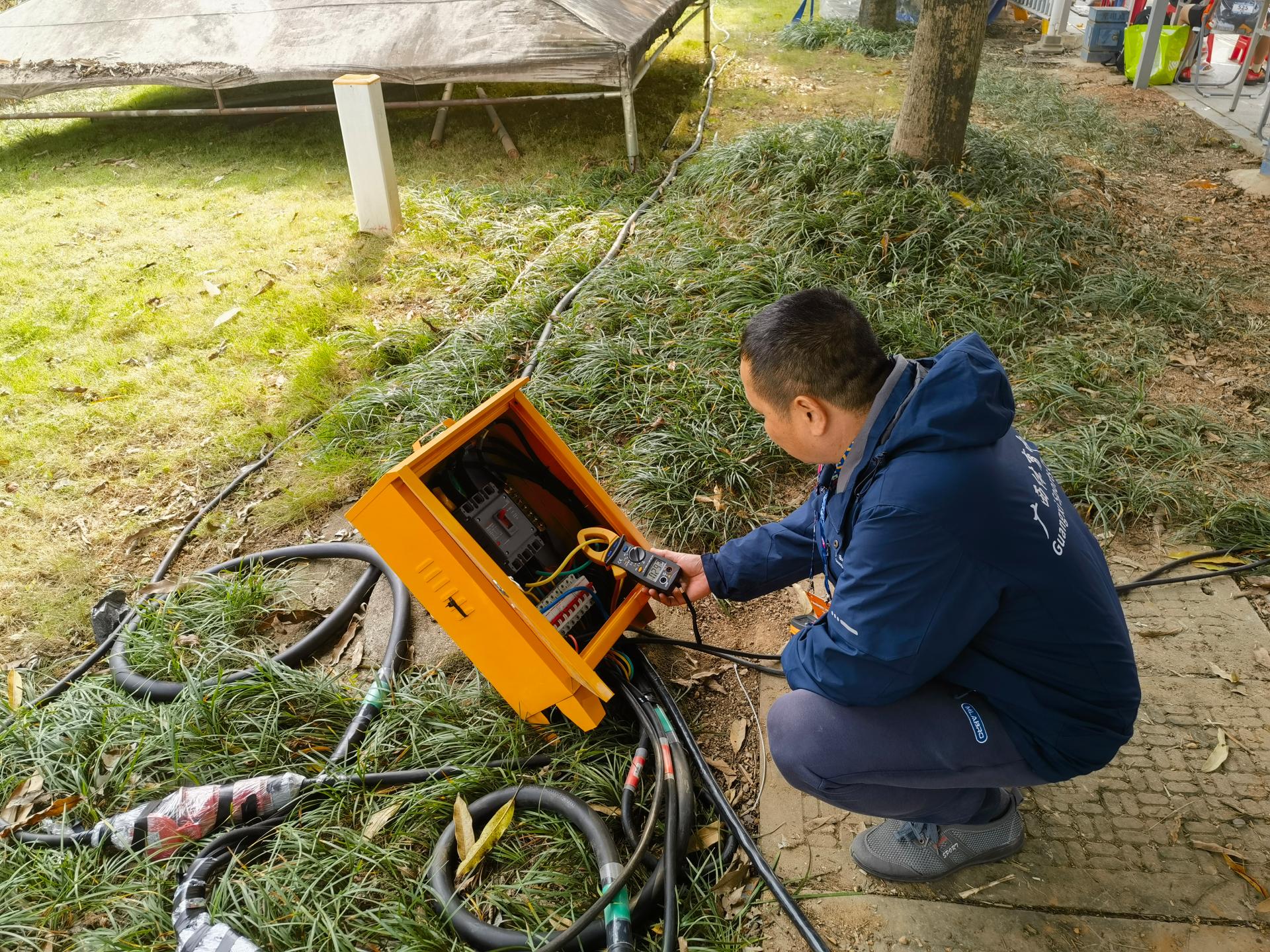 臨時電力保障是賽事順利運行的“命脈”。先鋒隊組建“黨員技術組”,提前對物資發放區、美食區、展覽區等重點區域開展電力接入點勘查、走線路徑規劃,高效落實臨時供電線路敷設條件,完成13臺配電箱安裝調試,構建起關鍵區域“全覆蓋、無死角”的電力保障體系。