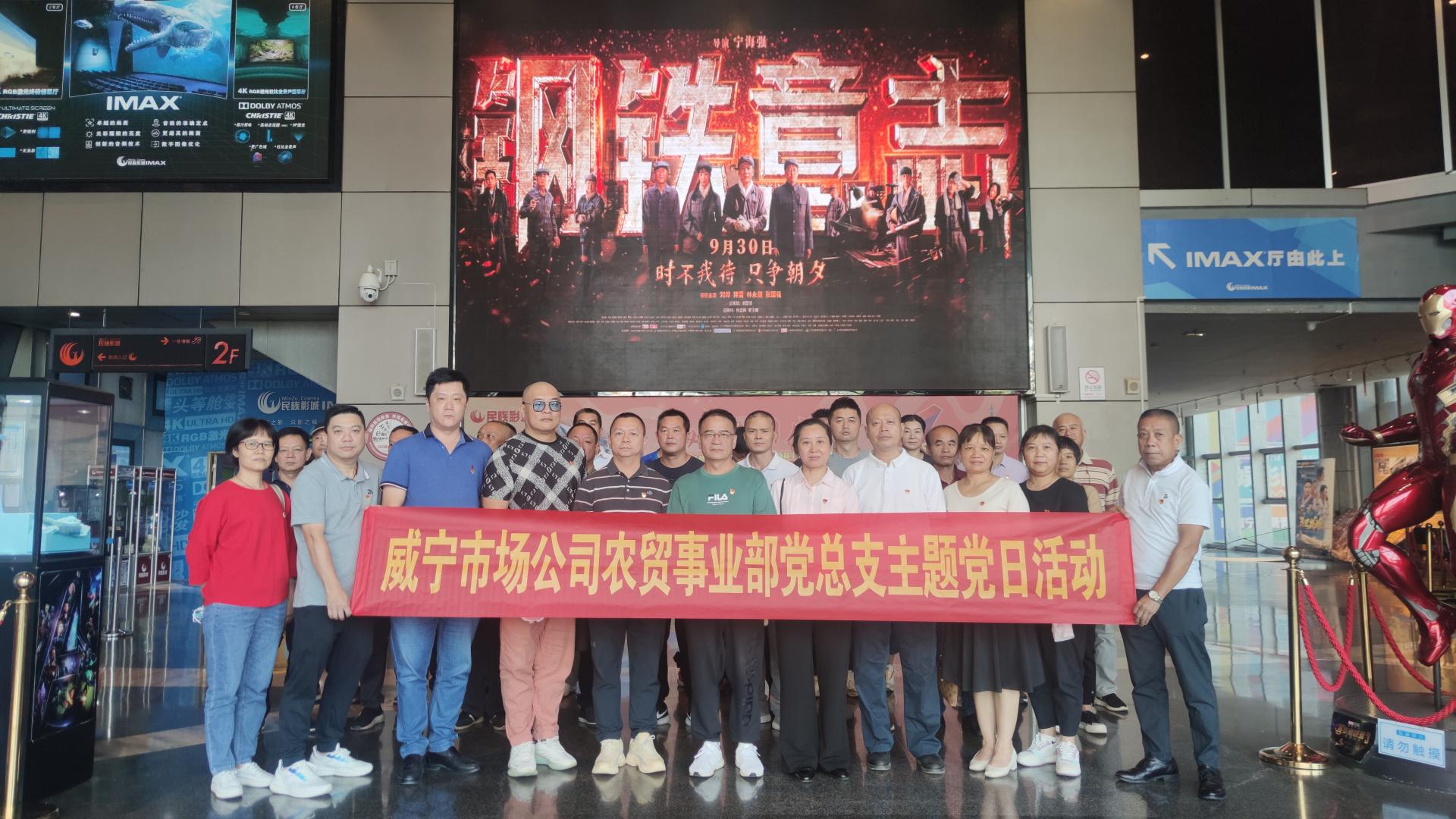 為學習宣傳貫徹黨的二十大精神,進一步激發和弘揚愛國情懷,激勵黨員職工奮進新征程,建功新時代。近日,威寧市場公司機關第一黨支部、商業事業部及農貿事業部黨總支通過開展主題黨日活動分別組織黨員職工集體觀看愛國主題題材電影《鋼鐵意志》《萬里歸途》。