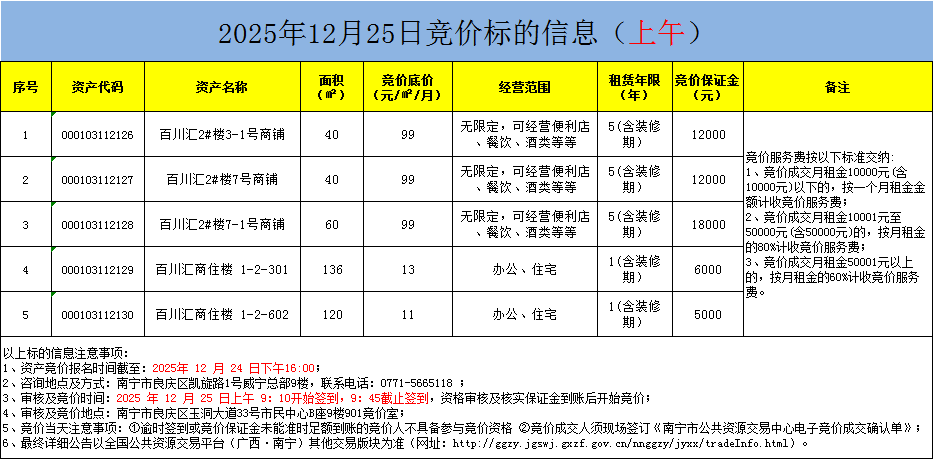 2025年12月25日競價標的信息(現場競價)