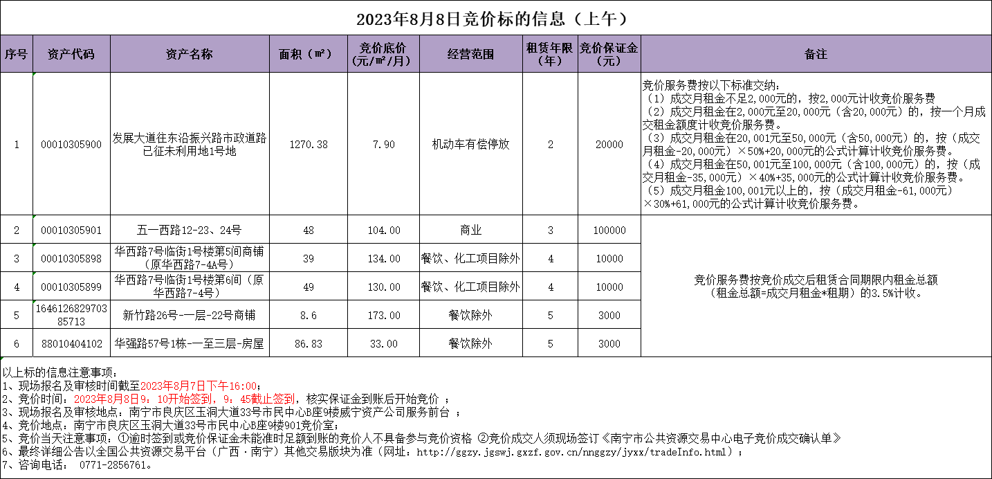 2023年8月8日競價標的信息