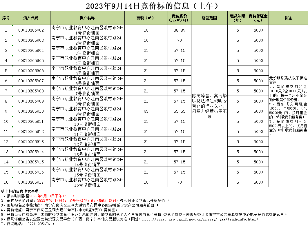 2023年9月14日競價標(biāo)的信息