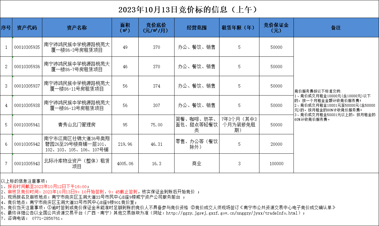 2023年10月13日競(jìng)價(jià)標(biāo)的信息