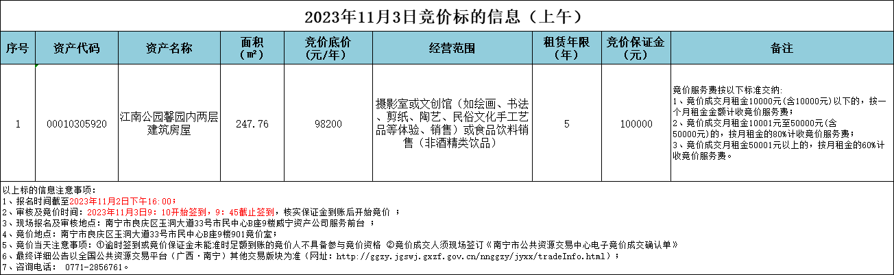 2023年11月3日競價標的信息