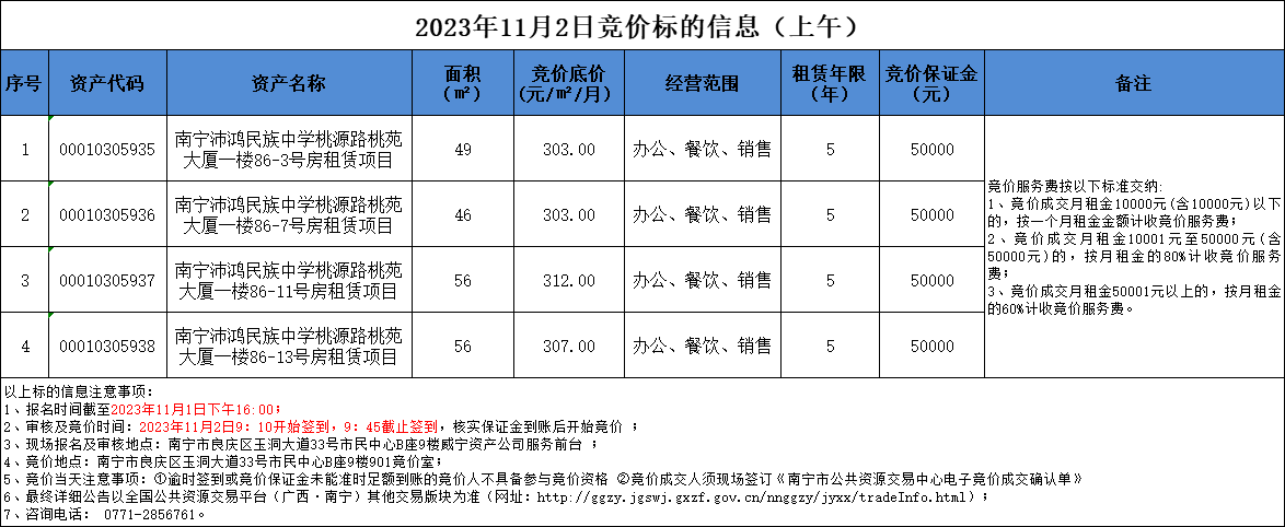 2023年11月2日競價標的信息