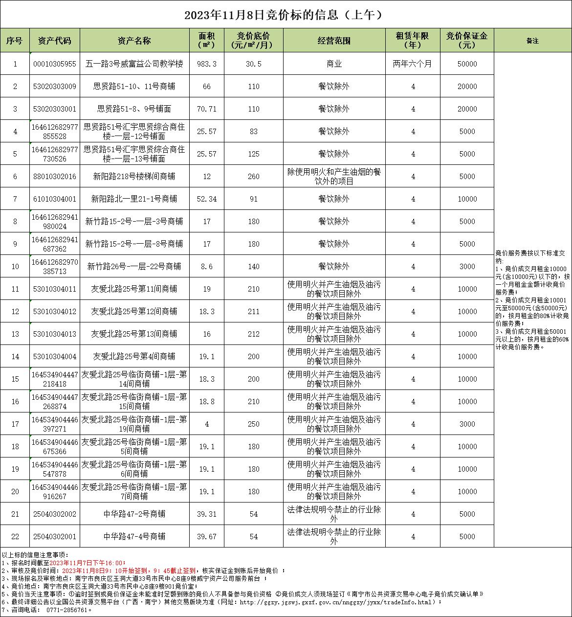 2023年11月8日競價標(biāo)的信息