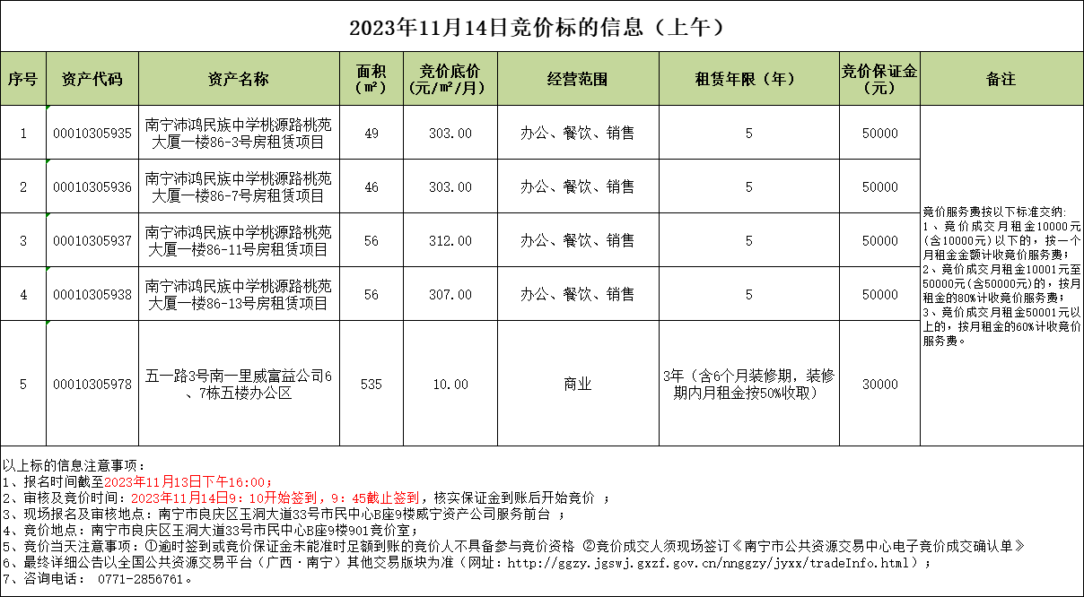 2023年11月14日競價標的信息